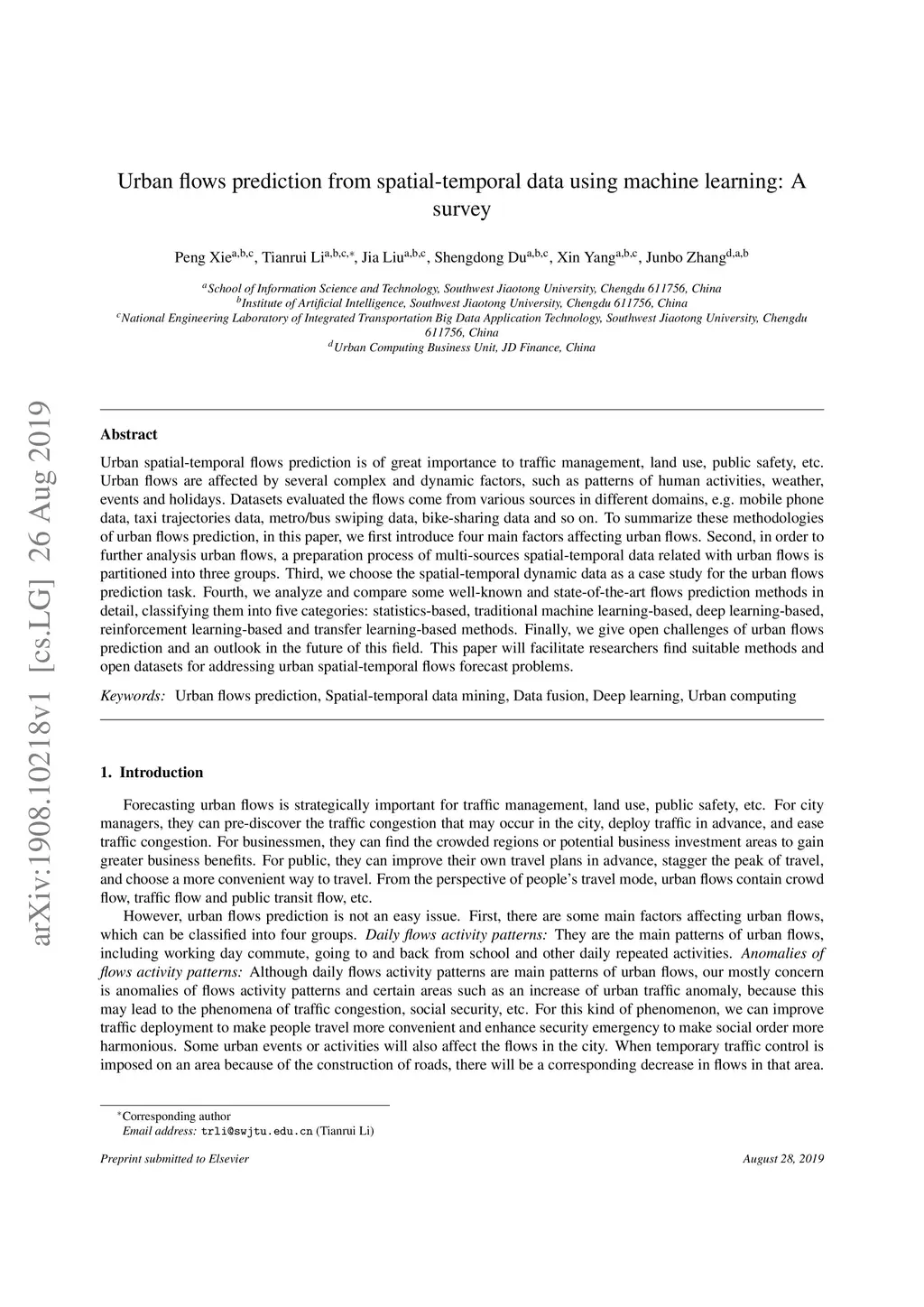 Urban flows prediction from spatial-temporal data using machine