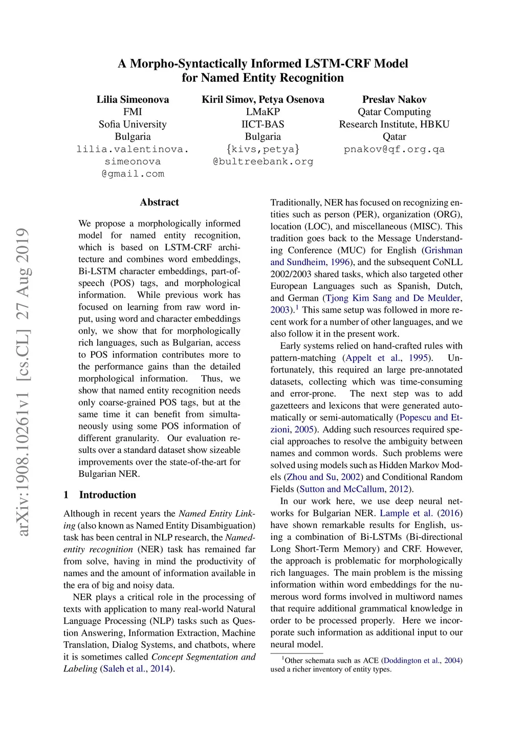 A Morpho-Syntactically Informed LSTM-CRF Model for Named Entity