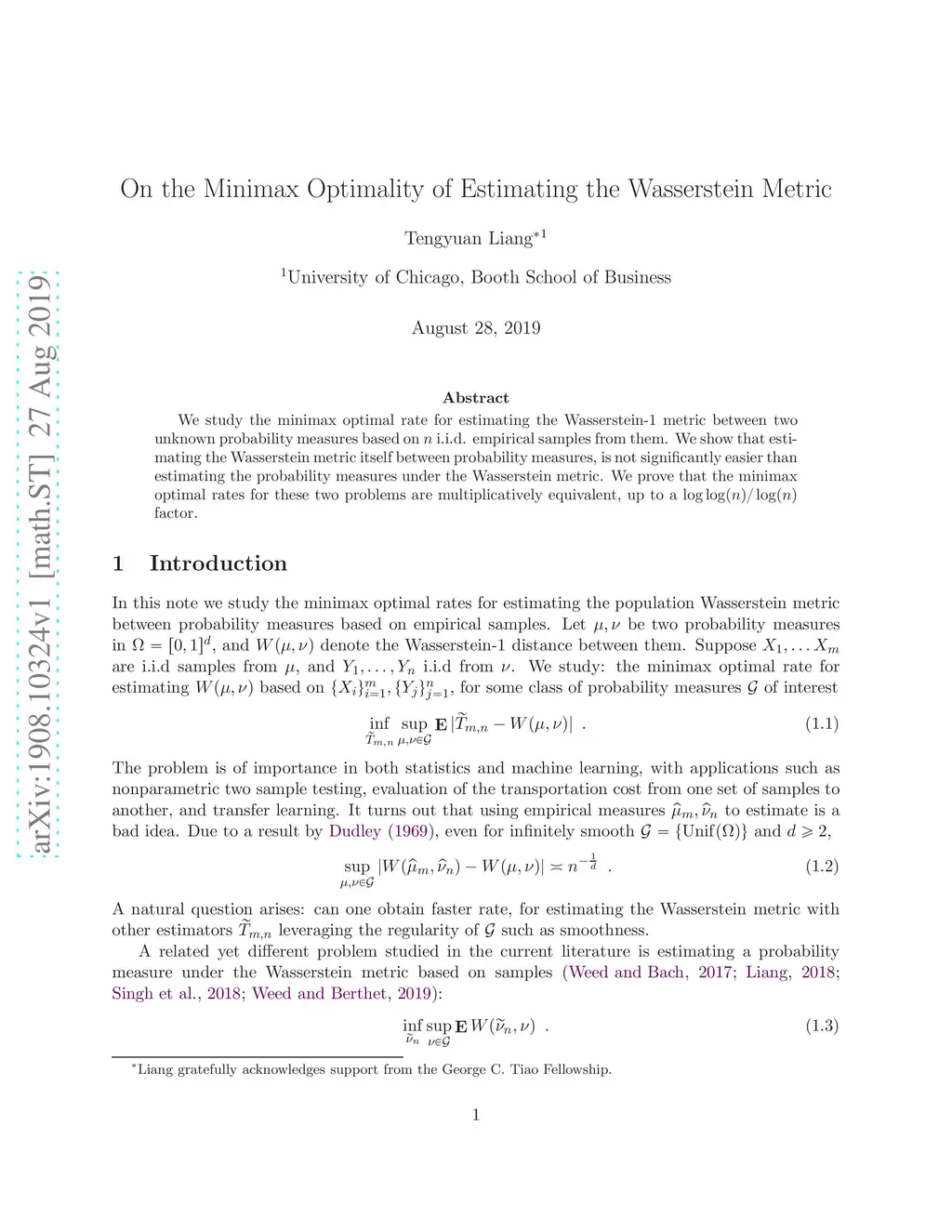 We study the minimax optimal rate for estimating the Wasserstein- metric between two unknown probability measures based on i.i.d. empirical samples from them. We show that estimating the Wasserstein metric itself between probability measures, is not significantly easier than estimating the probability measures under the Wasserstein metric. We prove that the minimax optimal rates for these two problems are multiplicatively equivalent, up to a factor.