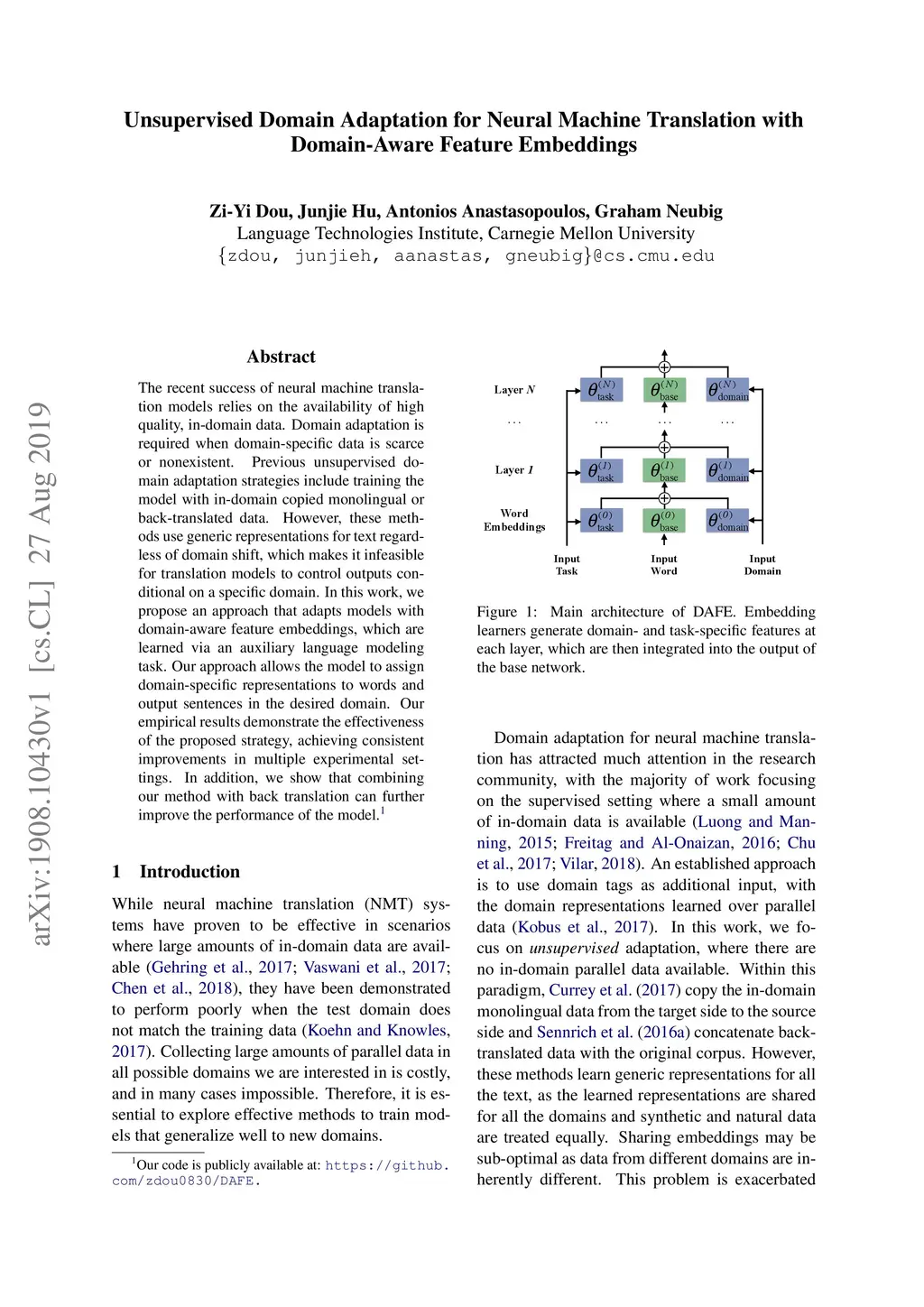 Unsupervised Domain Adaptation for Neural Machine Translation with
