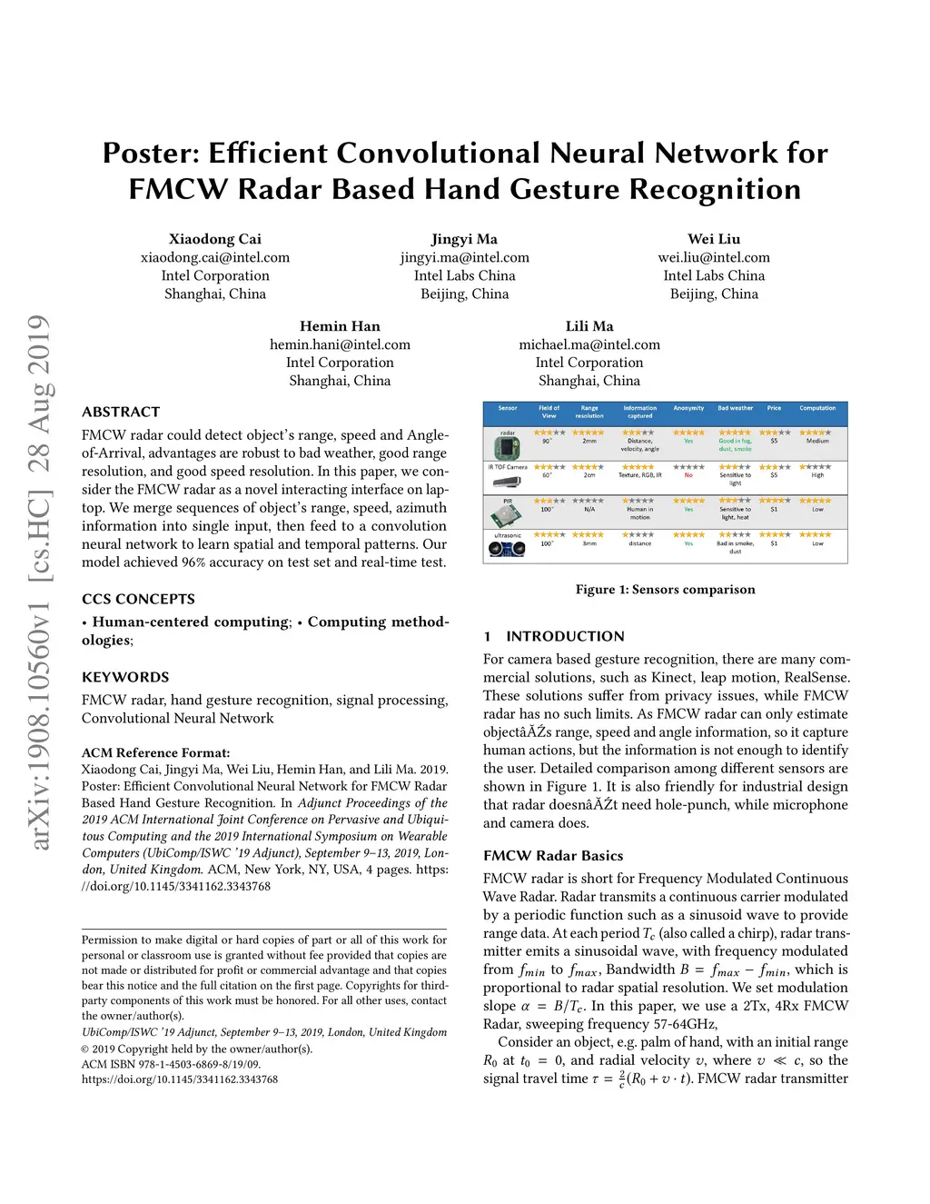 Efficient Convolutional Neural Network for FMCW Radar Based Hand Gesture