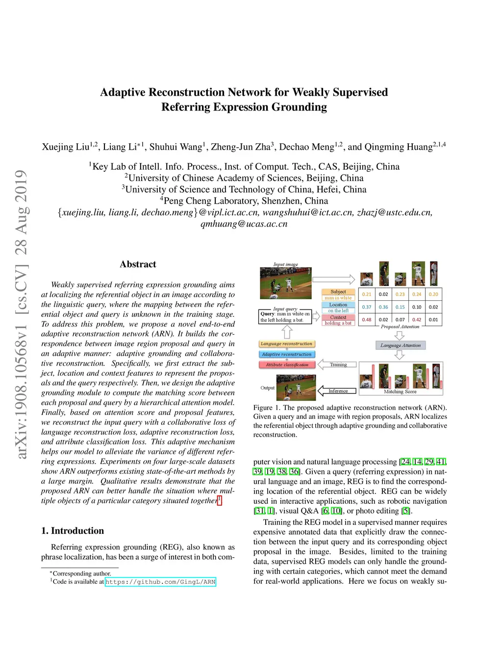 Adaptive Reconstruction Network for Weakly Supervised Referring