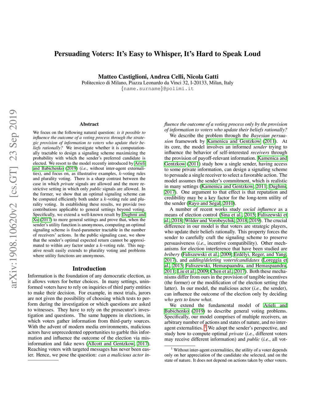 Persuading Voters: It's Easy to Whisper, It's Hard to Speak Loud