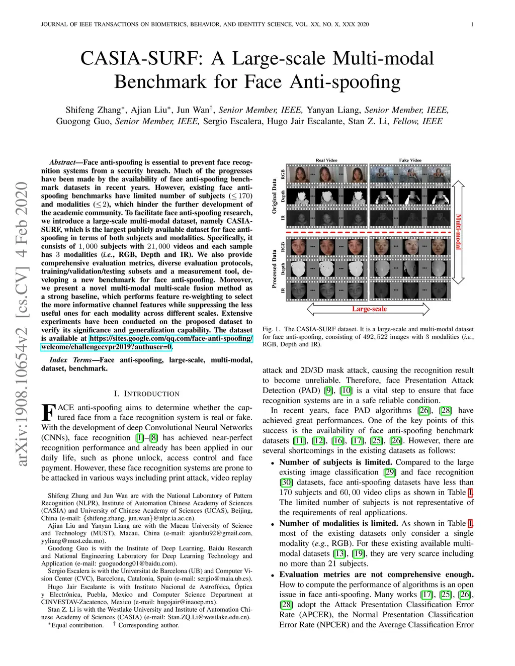 CASIA-SURF: A Large-scale Multi-modal Benchmark for Face Anti-spoofing