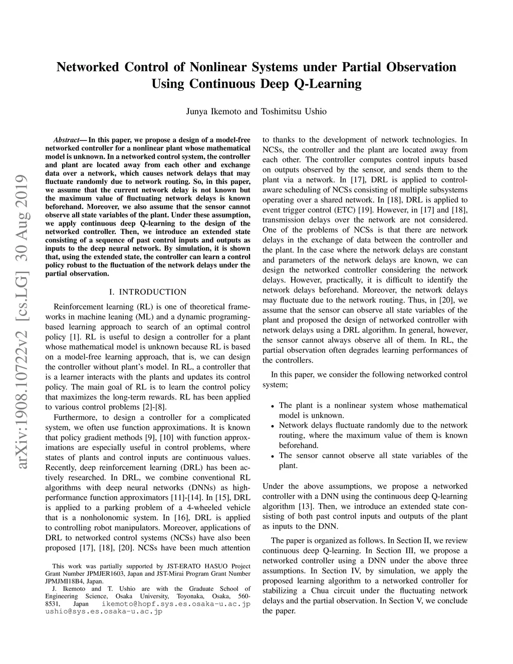 Networked Control of Nonlinear Systems under Partial Observation Using
