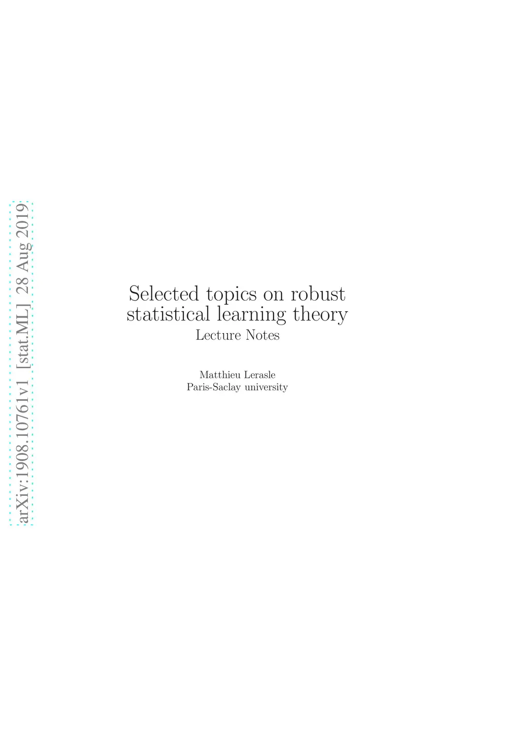 Lecture Notes: Selected topics on robust statistical learning theory