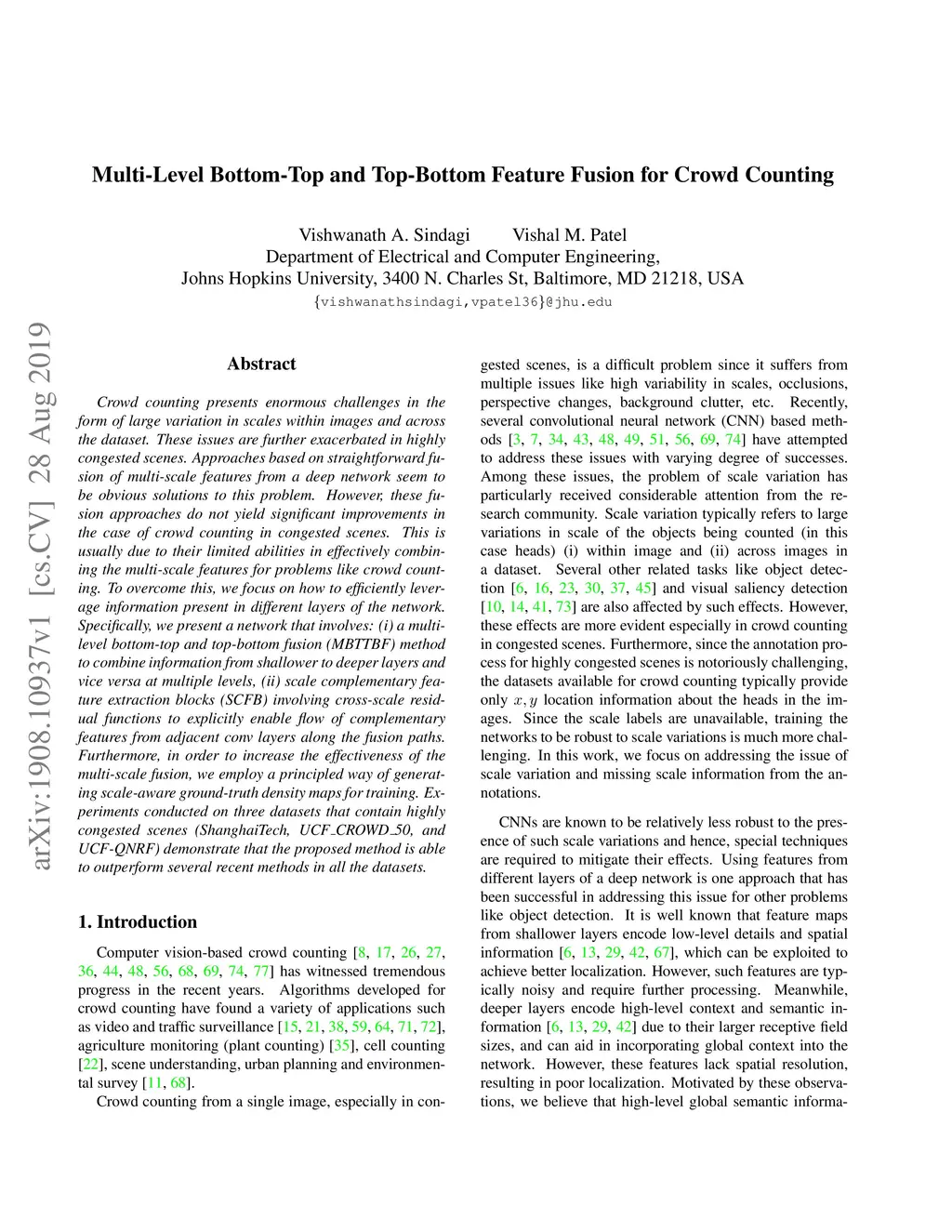 Multi-Level Bottom-Top and Top-Bottom Feature Fusion for Crowd Counting