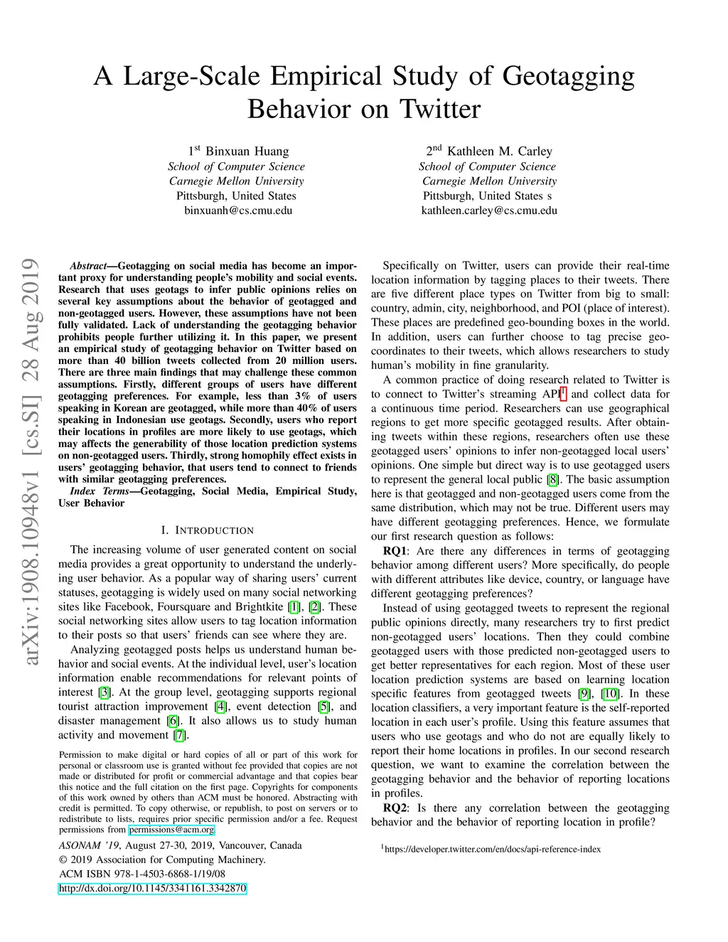 A Large-Scale Empirical Study of Geotagging Behavior on Twitter
