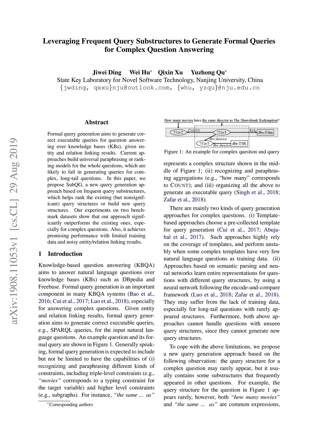 Leveraging Frequent Query Substructures to Generate Formal Queries for