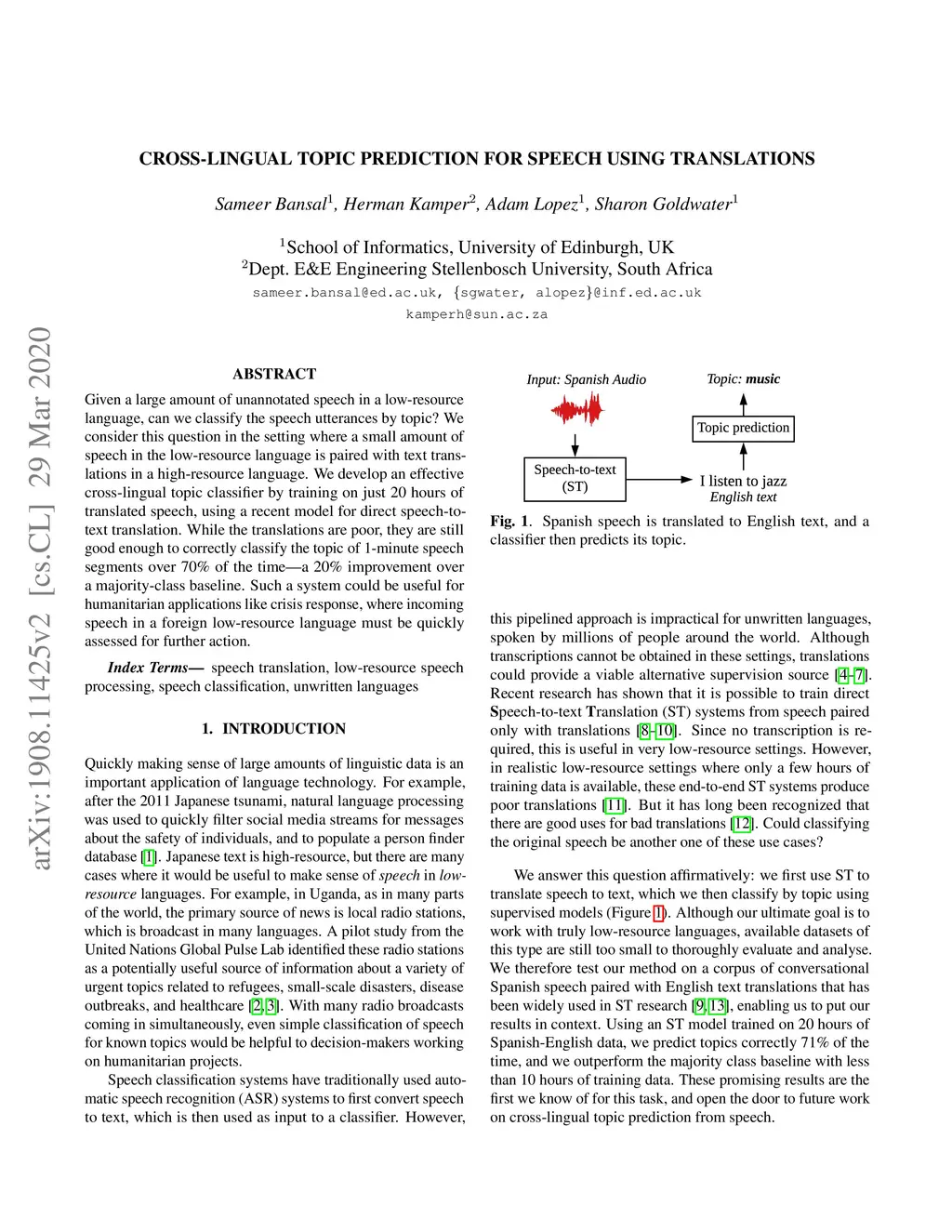 Cross-lingual topic prediction for speech using translations