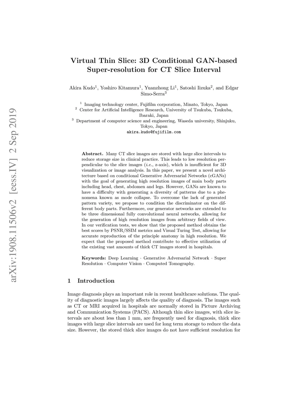 Virtual Thin Slice: 3D Conditional GAN-based Super-resolution for CT