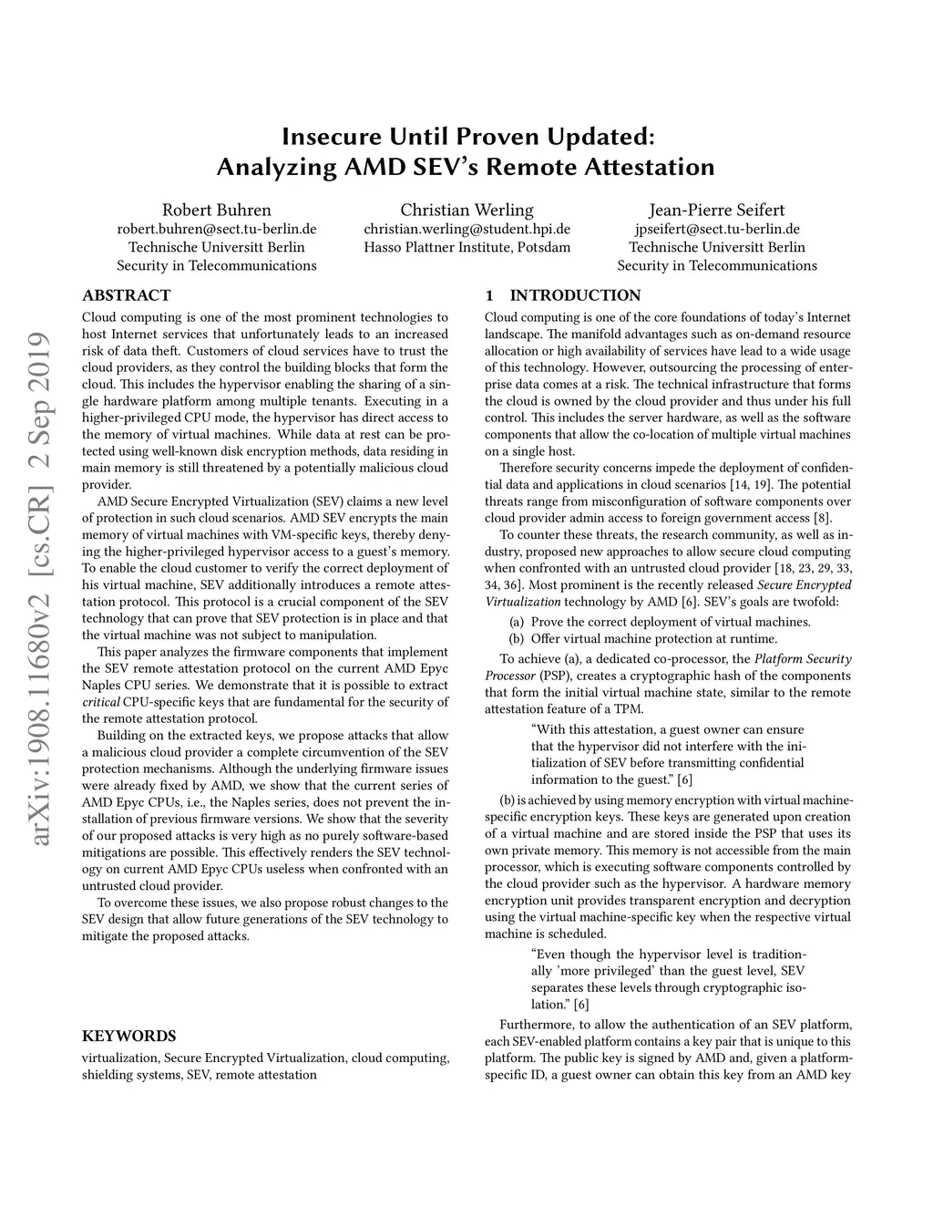 Customers of cloud services have to trust the cloud providers, as they control the building blocks that form the cloud. This includes the hypervisor enabling the sharing of a single hardware platform among multiple tenants. AMD Secure Encrypted Virtualization (SEV) claims a new level of protection in cloud scenarios. AMD SEV encrypts the main memory of virtual machines with VM-specific keys, thereby denying the higher-privileged hypervisor access to a guest's memory. To enable the cloud customer to verify the correct deployment of his virtual machine, SEV additionally introduces a remote attestation protocol.This paper analyzes the firmware components that implement the SEV remote attestation protocol on the current AMD Epyc Naples CPU series. We demonstrate that it is possible to extract critical CPU-specific keys that are fundamental for the security of the remote attestation protocol.Building on the extracted keys, we propose attacks that allow a malicious cloud provider a complete circumvention of the SEV protection mechanisms. Although the underlying firmware issues were already fixed by AMD, we show that the current series of AMD Epyc CPUs, i.e., the Naples series, does not prevent the installation of previous firmware versions. We show that the severity of our proposed attacks is very high as no purely software-based mitigations are possible. This effectively renders the SEV technology on current AMD Epyc CPUs useless when confronted with an untrusted cloud provider.To overcome these issues, we also propose robust changes to the SEV design that allow future generations of the SEV technology to mitigate the proposed attacks.