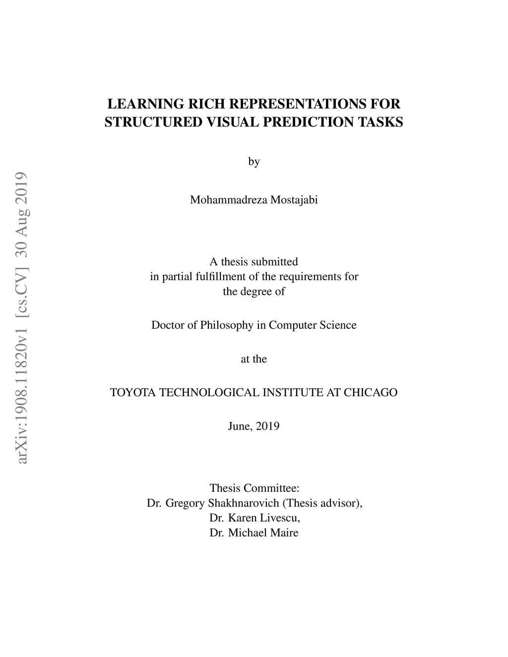 Learning Rich Representations For Structured Visual Prediction Tasks