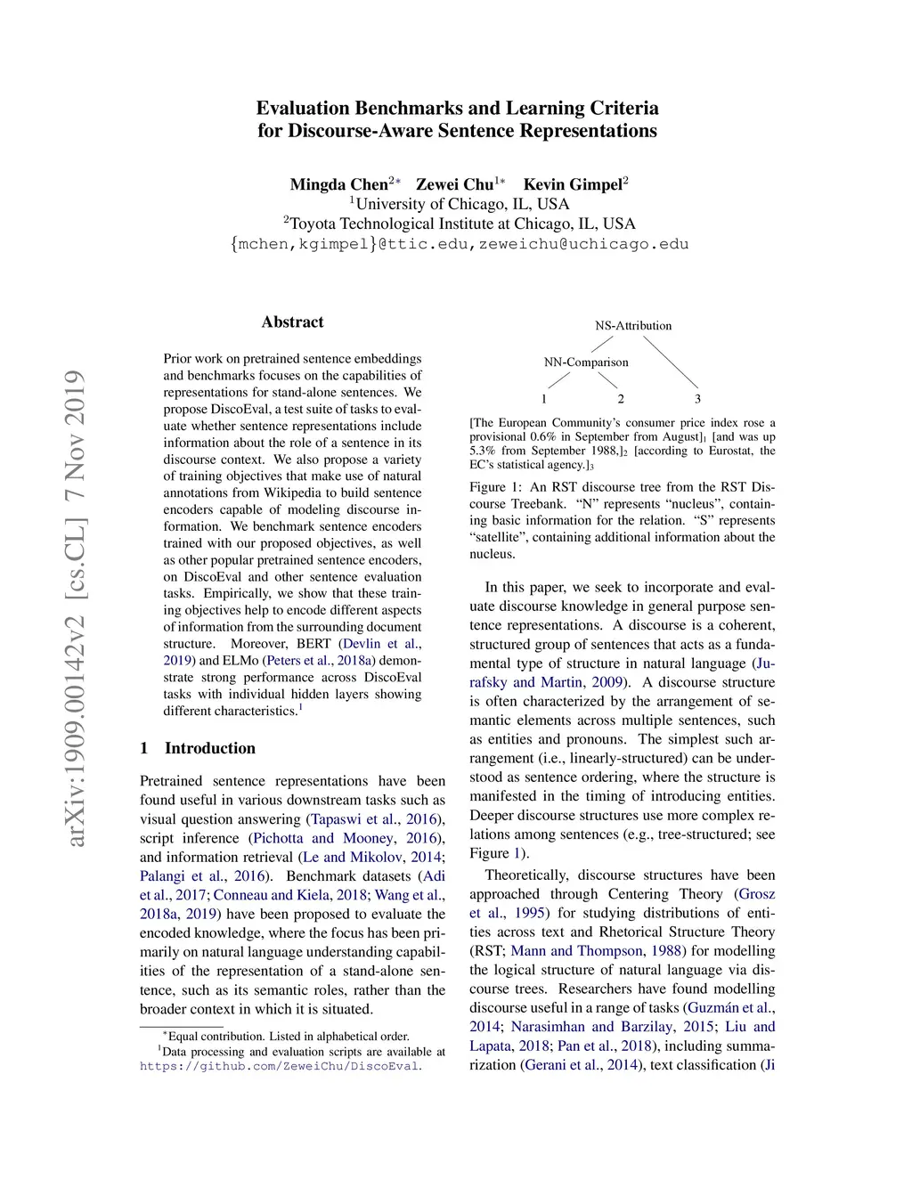 Evaluation Benchmarks and Learning Criteria for Discourse-Aware Sentence
