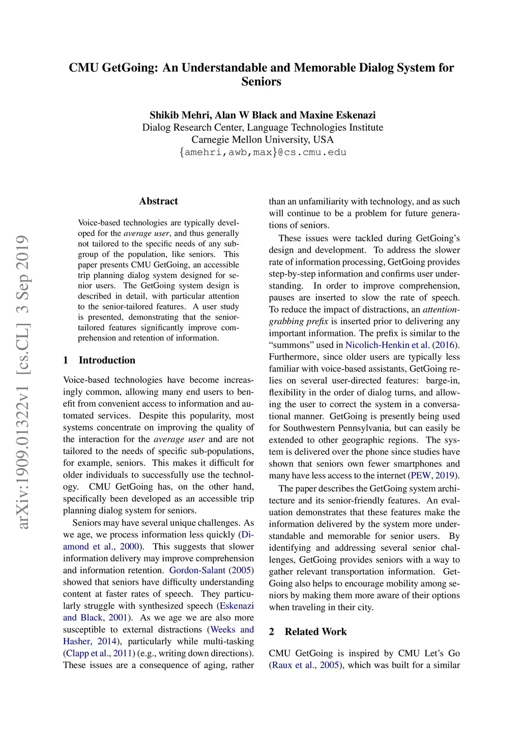 CMU GetGoing: An Understandable and Memorable Dialog System for Seniors
