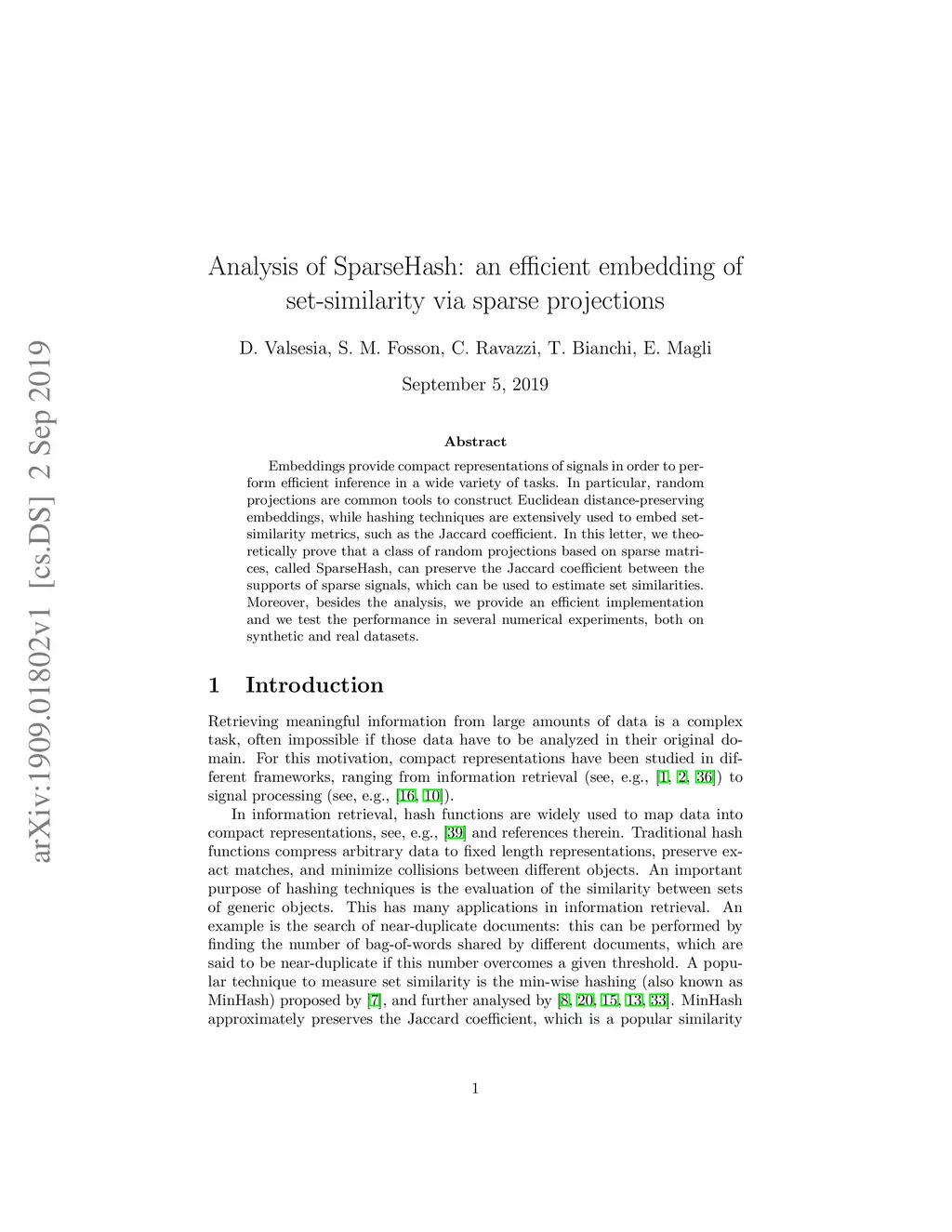 Analysis of SparseHash: an efficient embedding of set-similarity via