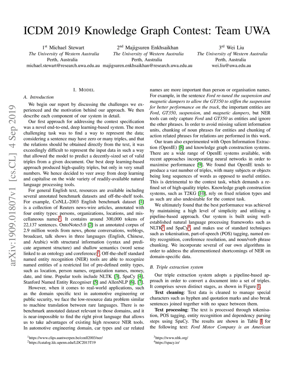 ICDM 2019 Knowledge Graph Contest: Team UWA