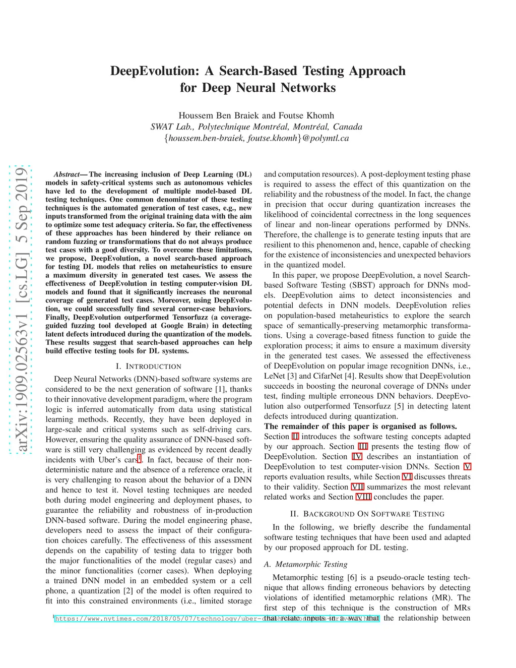 DeepEvolution: A Search-Based Testing Approach for Deep Neural Networks