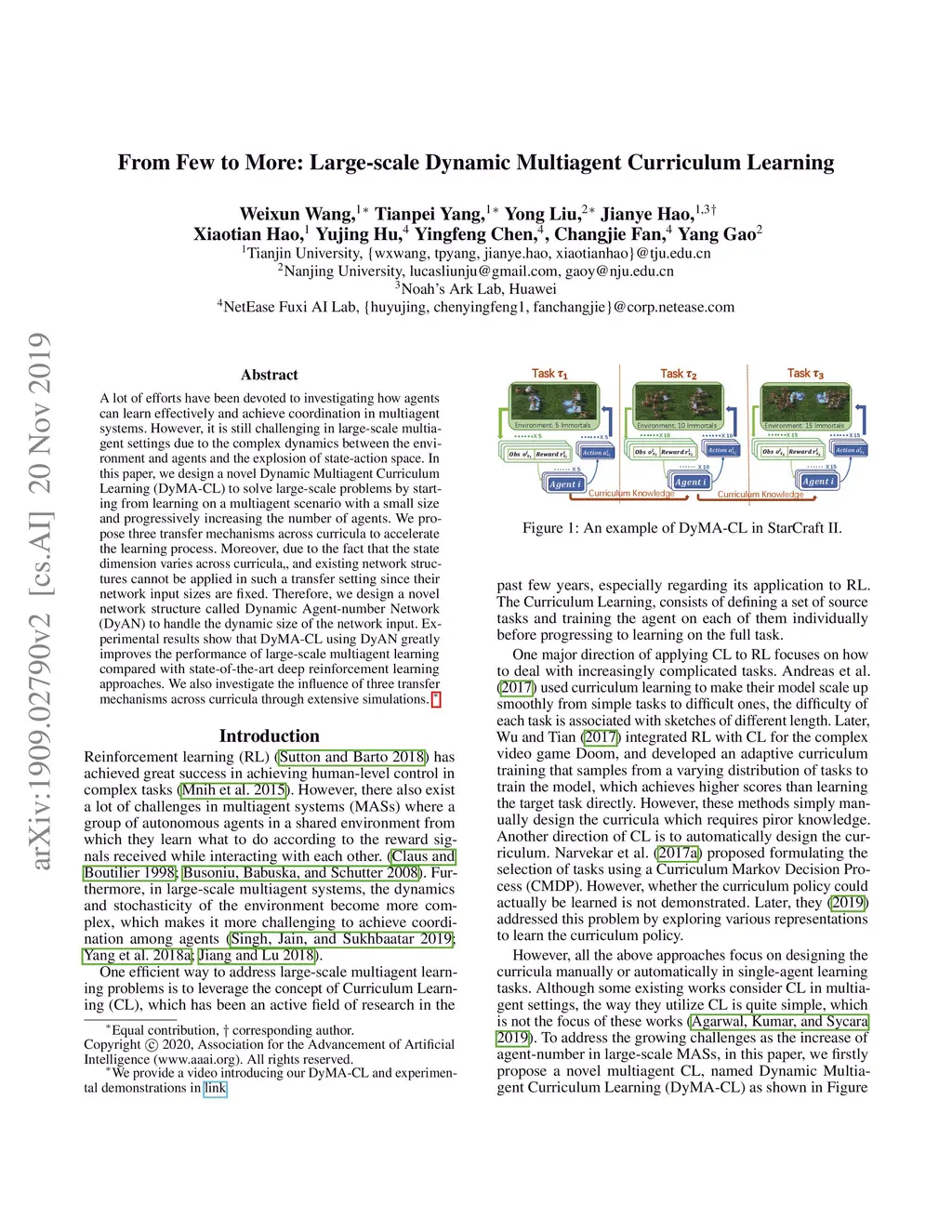 From Few to More: Large-scale Dynamic Multiagent Curriculum Learning