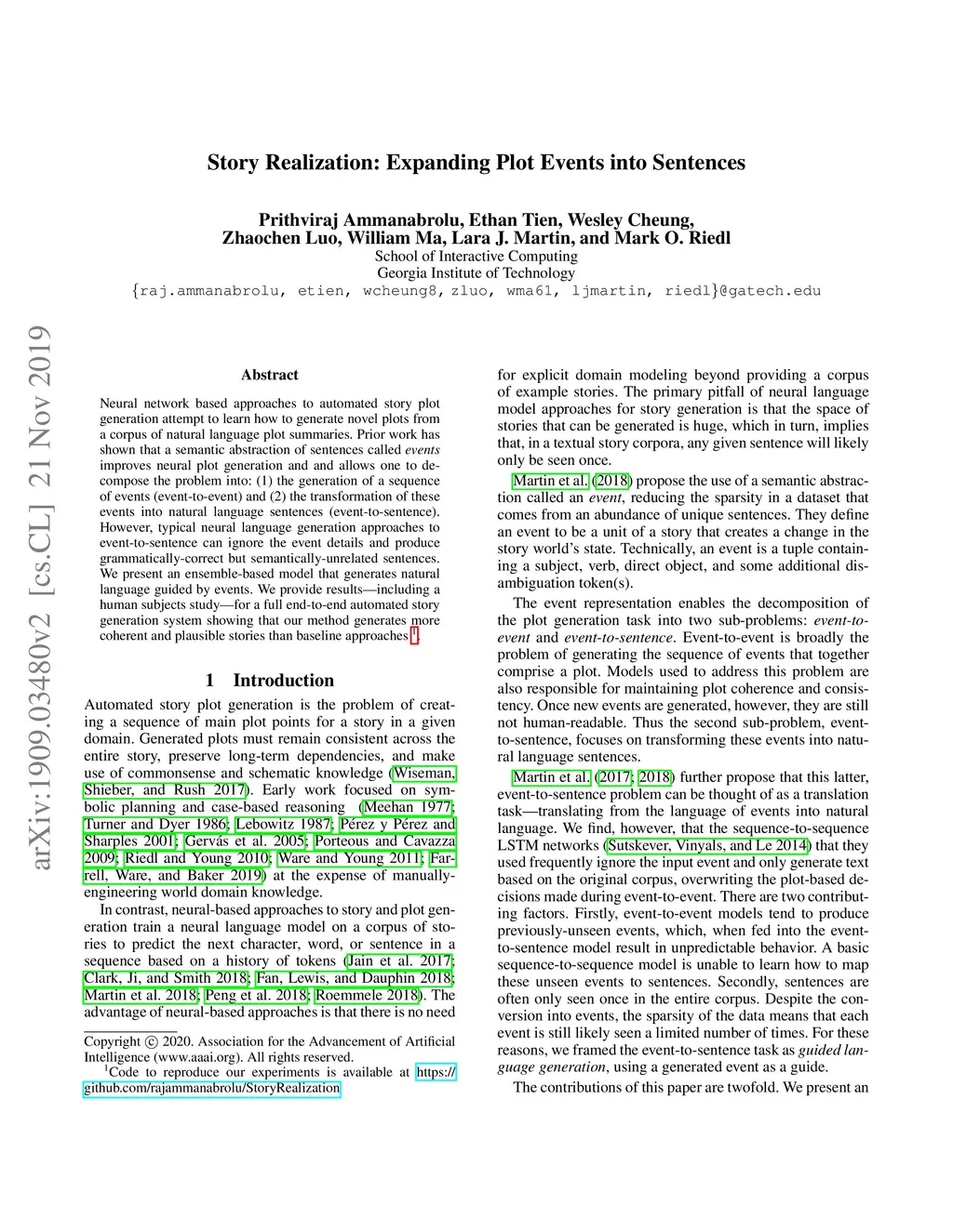 Neural network based approaches to automated story plot generation attempt to learn how to generate novel plots from a corpus of natural language plot summaries. Prior work has shown that a semantic abstraction of sentences called events improves neural plot generation and and allows one to decompose the problem into: (1) the generation of a sequence of events (event-to-event) and (2) the transformation of these events into natural language sentences (event-to-sentence). However, typical neural language generation approaches to event-to-sentence can ignore the event details and produce grammatically-correct but semantically-unrelated sentences. We present an ensemble-based model that generates natural language guided by events.We provide results---including a human subjects study---for a full end-to-end automated story generation system showing that our method generates more coherent and plausible stories than baseline approaches.