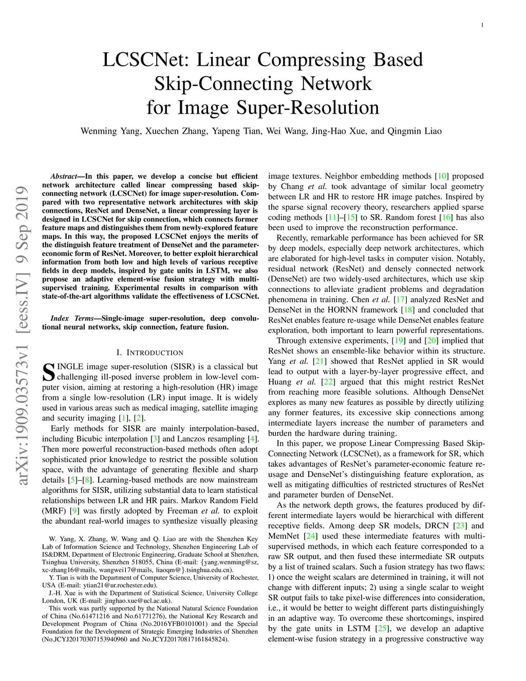 LCSCNet: Linear Compressing Based Skip-Connecting Network for Image