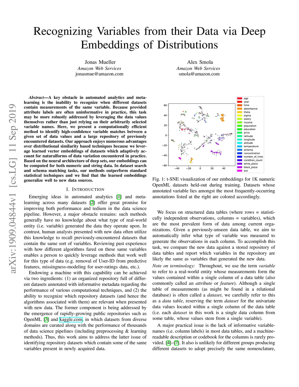 Recognizing Variables from their Data via Deep Embeddings of