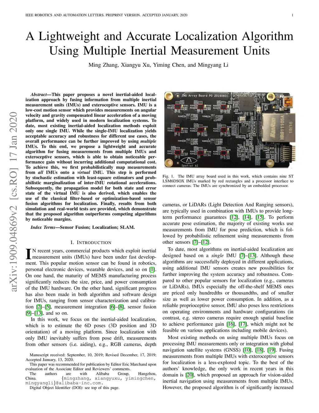 This paper proposes a novel inertial-aided localization approach by fusing information from multiple inertial measurement units (IMUs) and exteroceptive sensors. IMU is a low-cost motion sensor which provides measurements on angular velocity and gravity compensated linear acceleration of a moving platform, and widely used in modern localization systems. To date, most existing inertial-aided localization methods exploit only one single IMU. While the single-IMU localization yields acceptable accuracy and robustness for different use cases, the overall performance can be further improved by using multiple IMUs. To this end, we propose a lightweight and accurate algorithm for fusing measurements from multiple IMUs and exteroceptive sensors, which is able to obtain noticeable performance gain without incurring additional computational cost. To achieve this, we first probabilistically map measurements from all IMUs onto a virtual IMU. This step is performed by stochastic estimation with least-square estimators and probabilistic marginalization of inter-IMU rotational accelerations. Subsequently, the propagation model for both state and error state of the virtual IMU is also derived, which enables the use of the classical filter-based or optimization-based sensor fusion algorithms for localization. Finally, results from both simulation and real-world tests are provided, which demonstrate that the proposed algorithm outperforms competing algorithms by noticeable margins.