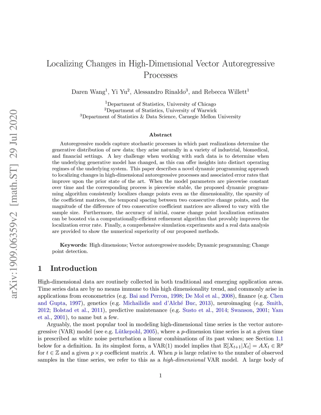 Autoregressive models capture stochastic processes in which past realizations determine the generative distribution of new data; they arise naturally in a variety of industrial, biomedical, and financial settings. A key challenge when working with such data is to determine when the underlying generative model has changed, as this can offer insights into distinct operating regimes of the underlying system. This paper describes a novel dynamic programming approach to localizing changes in high-dimensional autoregressive processes and associated error rates that improve upon the prior state of the art. When the model parameters are piecewise constant over time and the corresponding process is piecewise stable, the proposed dynamic programming algorithm consistently localizes change points even as the dimensionality, the sparsity of the coefficient matrices, the temporal spacing between two consecutive change points, and the magnitude of the difference of two consecutive coefficient matrices are allowed to vary with the sample size. Furthermore, the accuracy of initial, coarse change point localization estimates can be boosted via a computationally-efficient refinement algorithm that provably improves the localization error rate. Finally, a comprehensive simulation experiments and a real data analysis are provided to show the numerical superiority of our proposed methods.