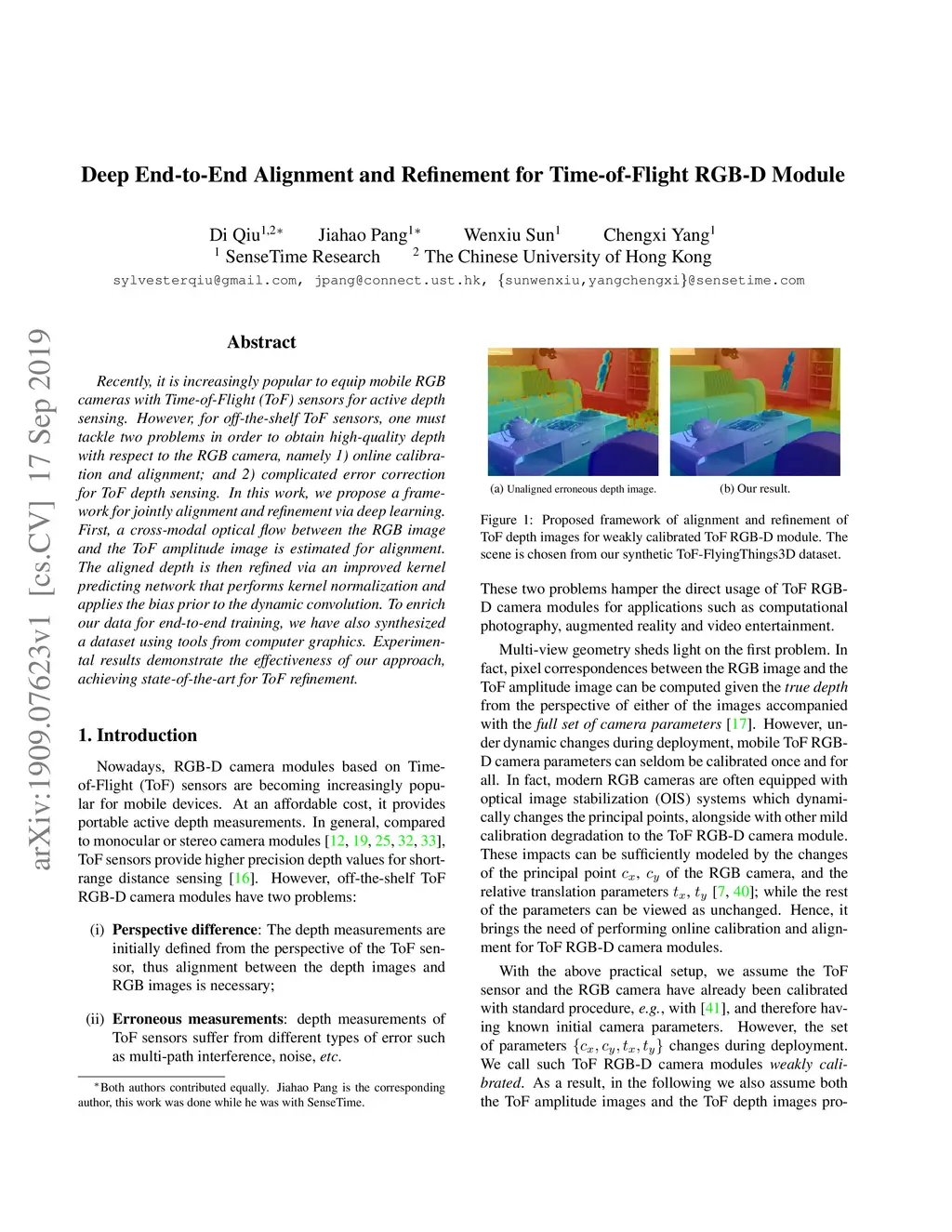 Deep End-to-End Alignment and Refinement for Time-of-Flight RGB-D Module