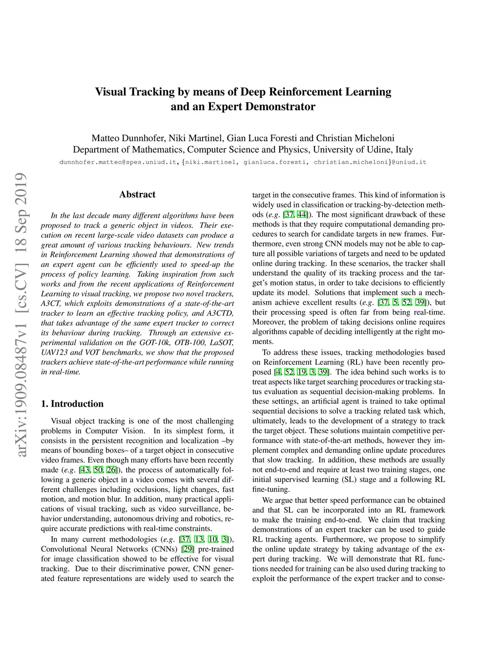 Visual Tracking by means of Deep Reinforcement Learning and an Expert