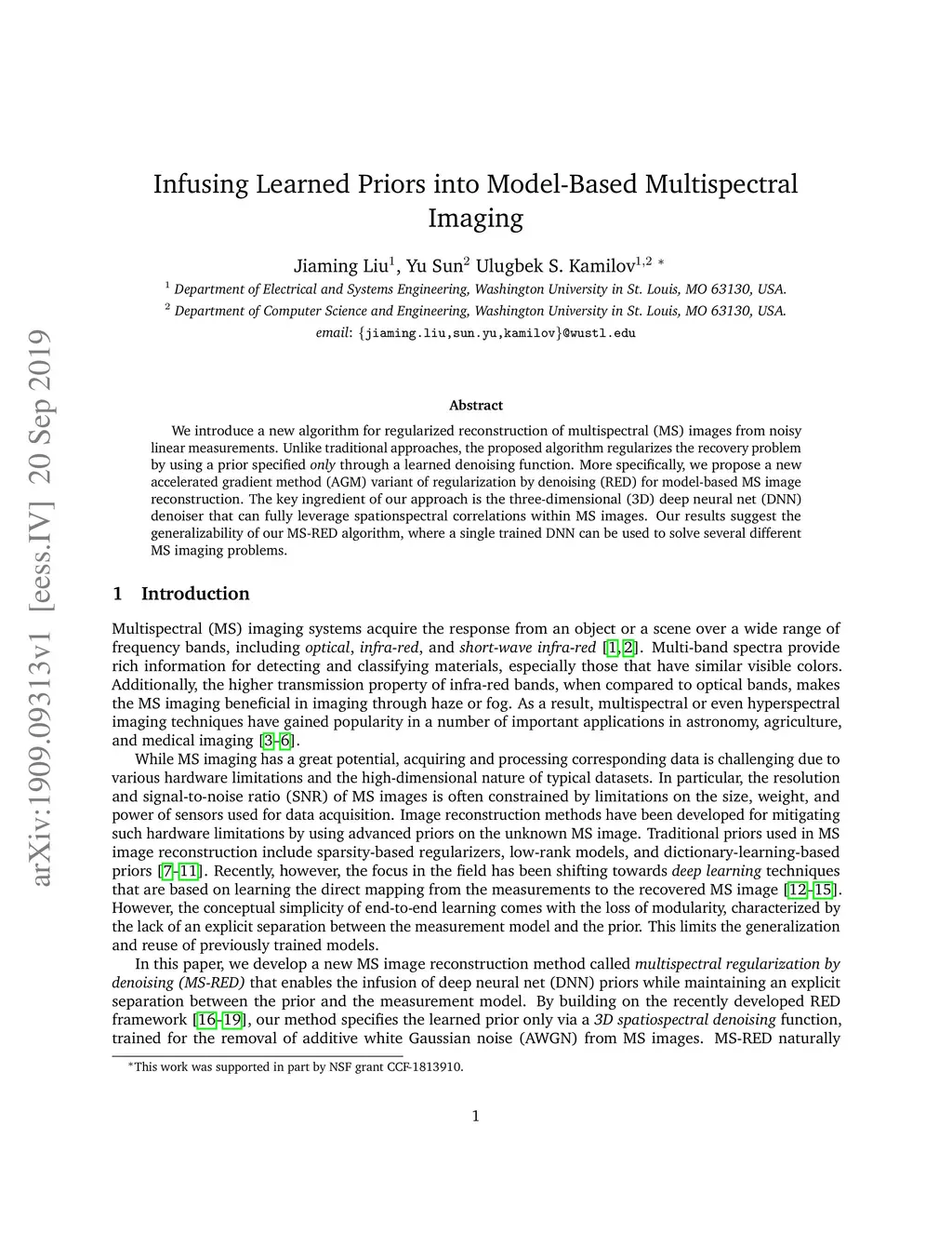 Infusing Learned Priors into Model-Based Multispectral Imaging