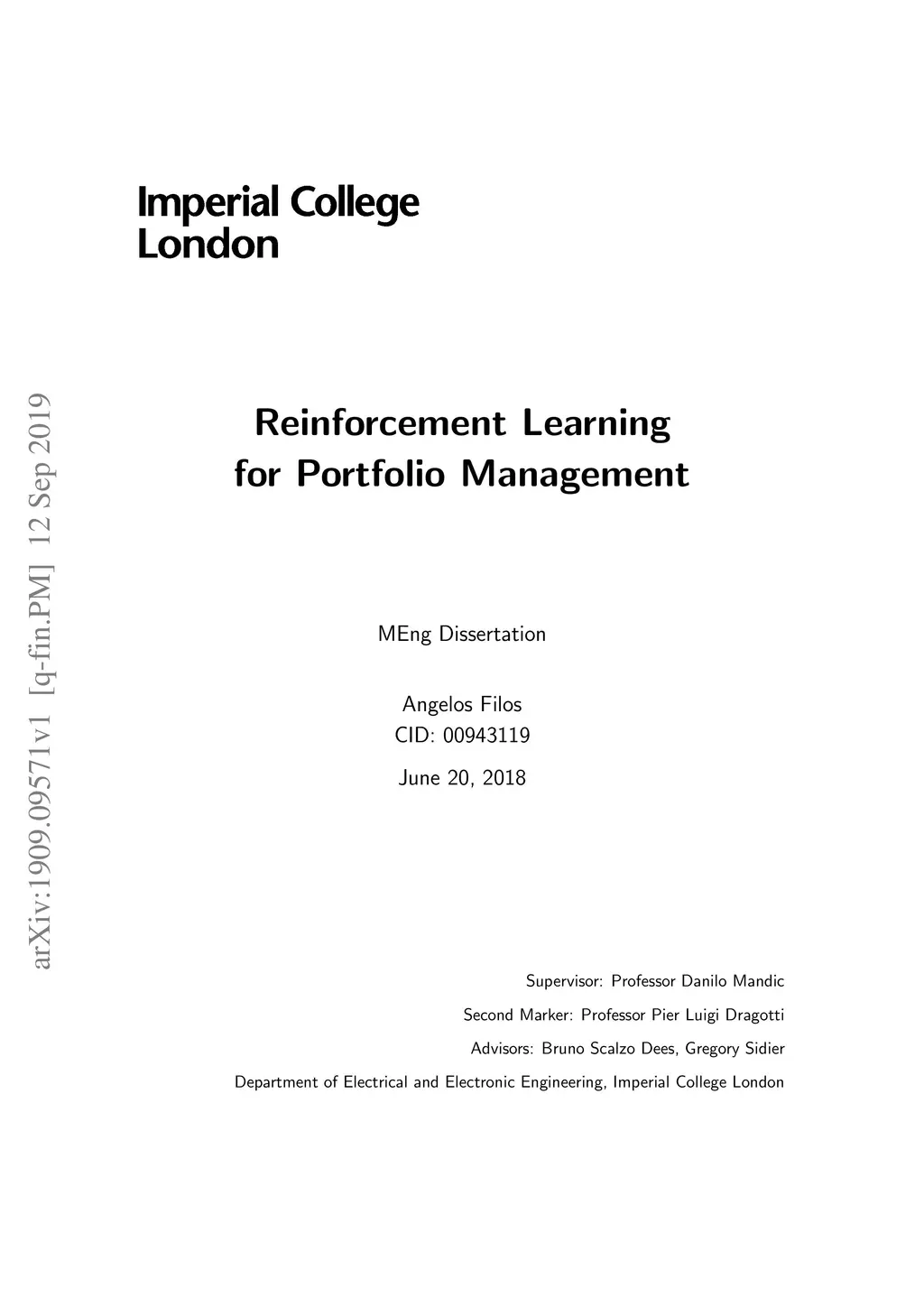 Reinforcement Learning for Portfolio Management