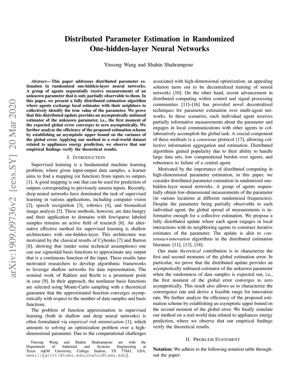 Distributed Parameter Estimation in Randomized One-hidden-layer Neural