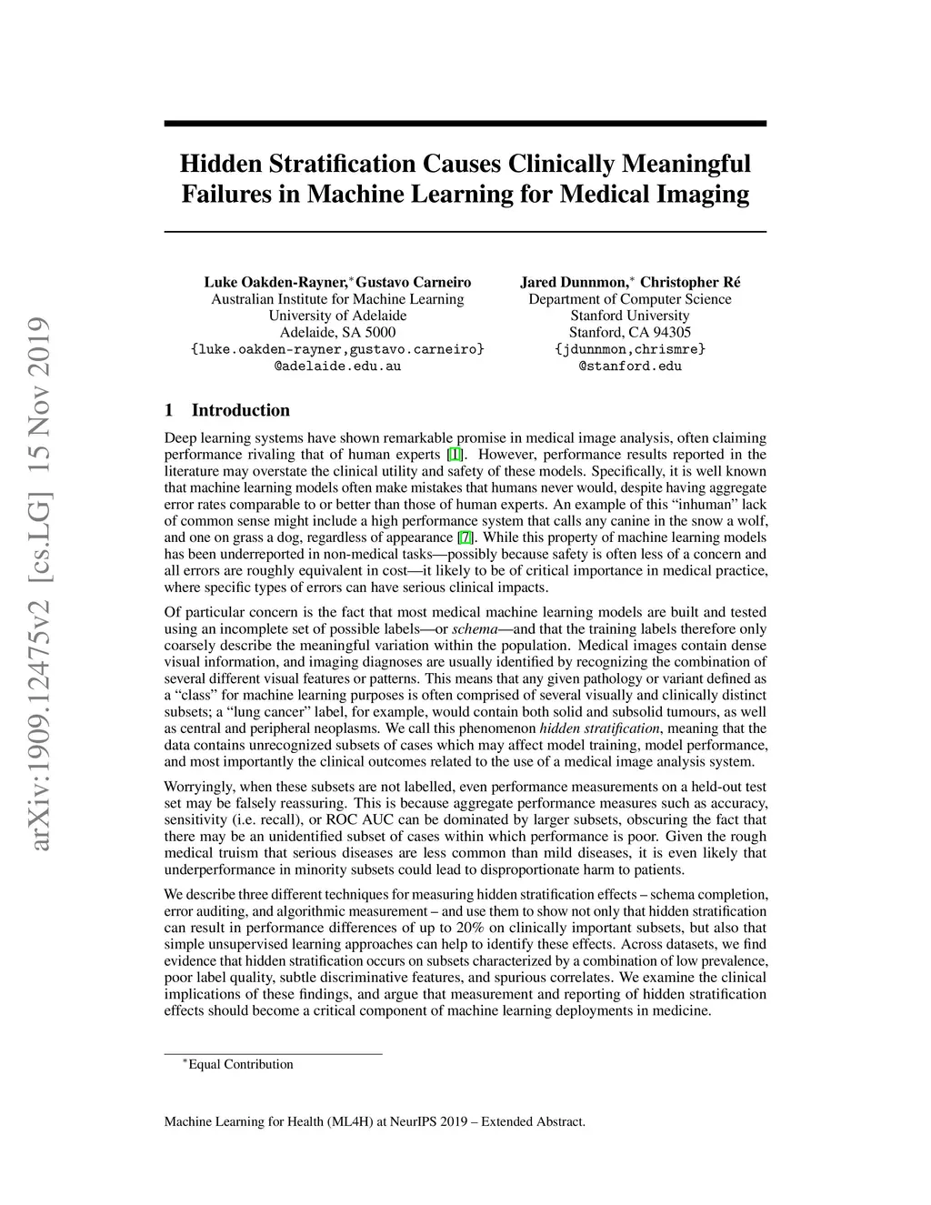 Hidden Stratification Causes Clinically Meaningful Failures in Machine