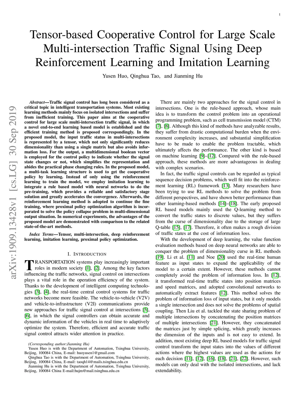 Traffic Signal Using Deep Reinforcement Learning and Imitation Learning