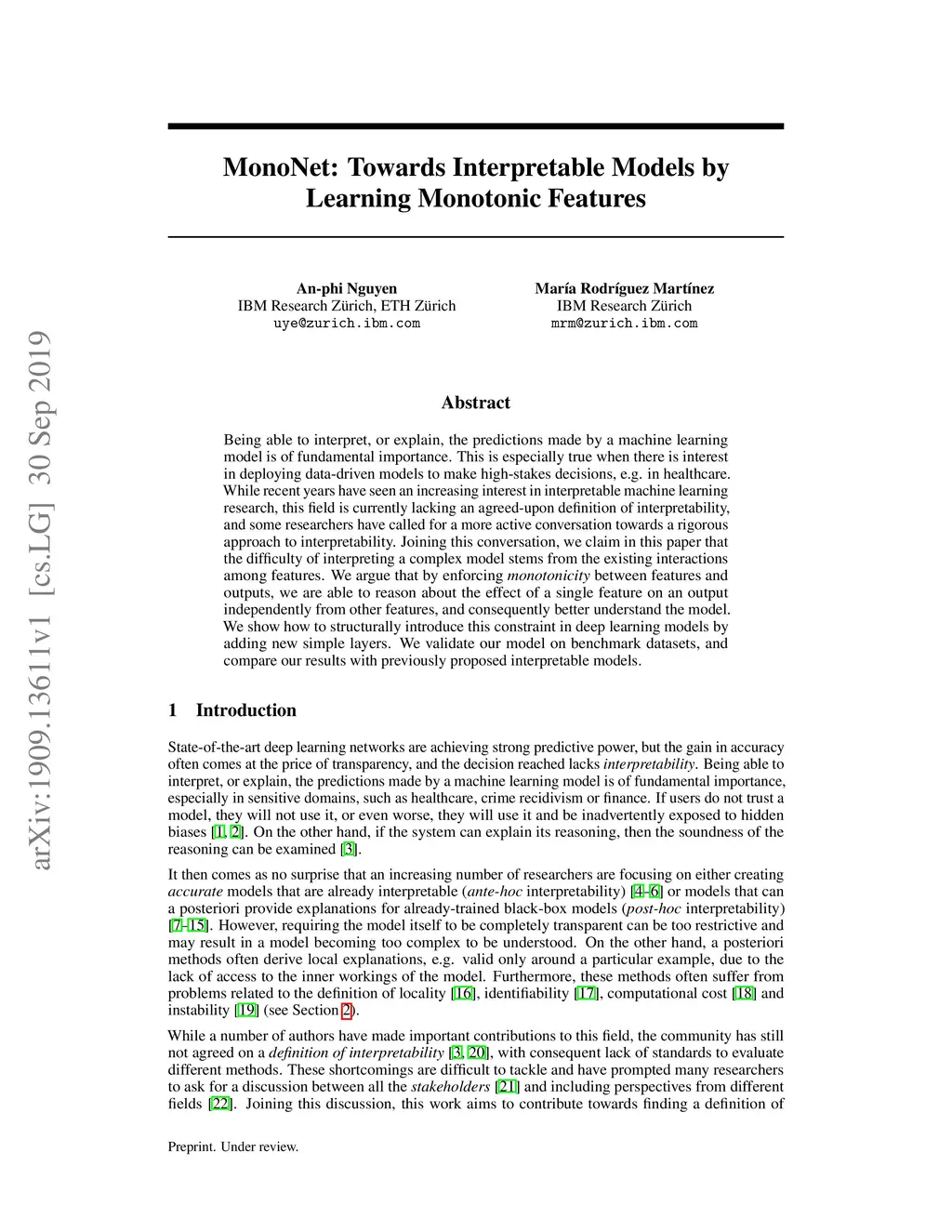 MonoNet: Towards Interpretable Models by Learning Monotonic Features