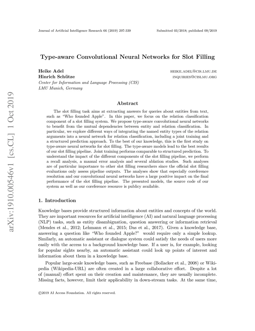 Type-aware Convolutional Neural Networks for Slot Filling