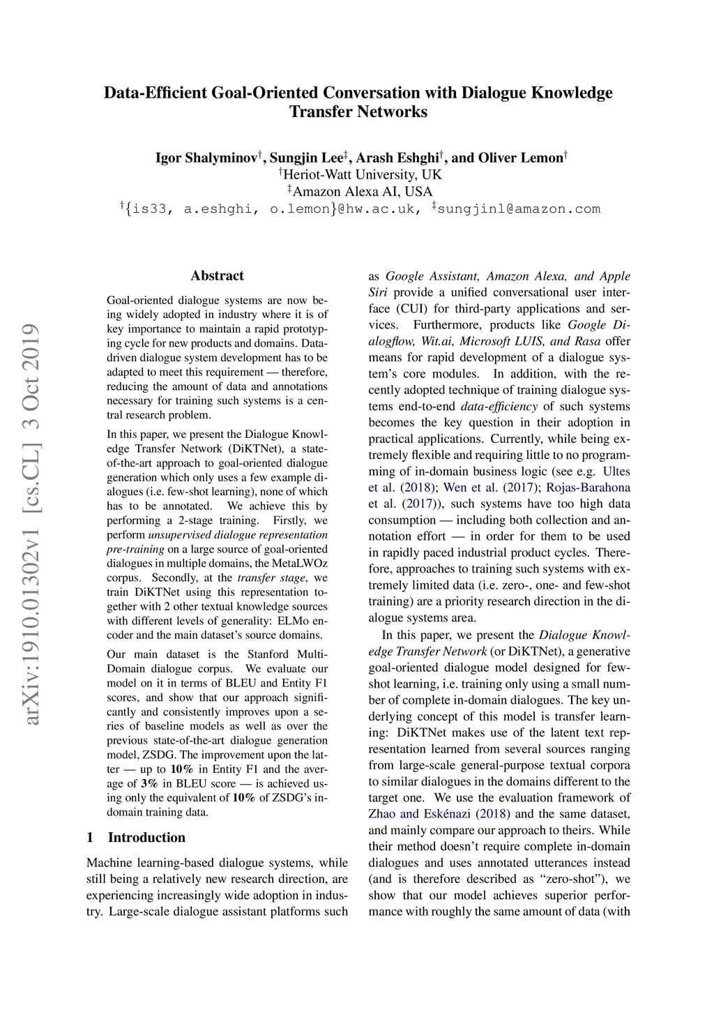 Data-Efficient Goal-Oriented Conversation with Dialogue Knowledge