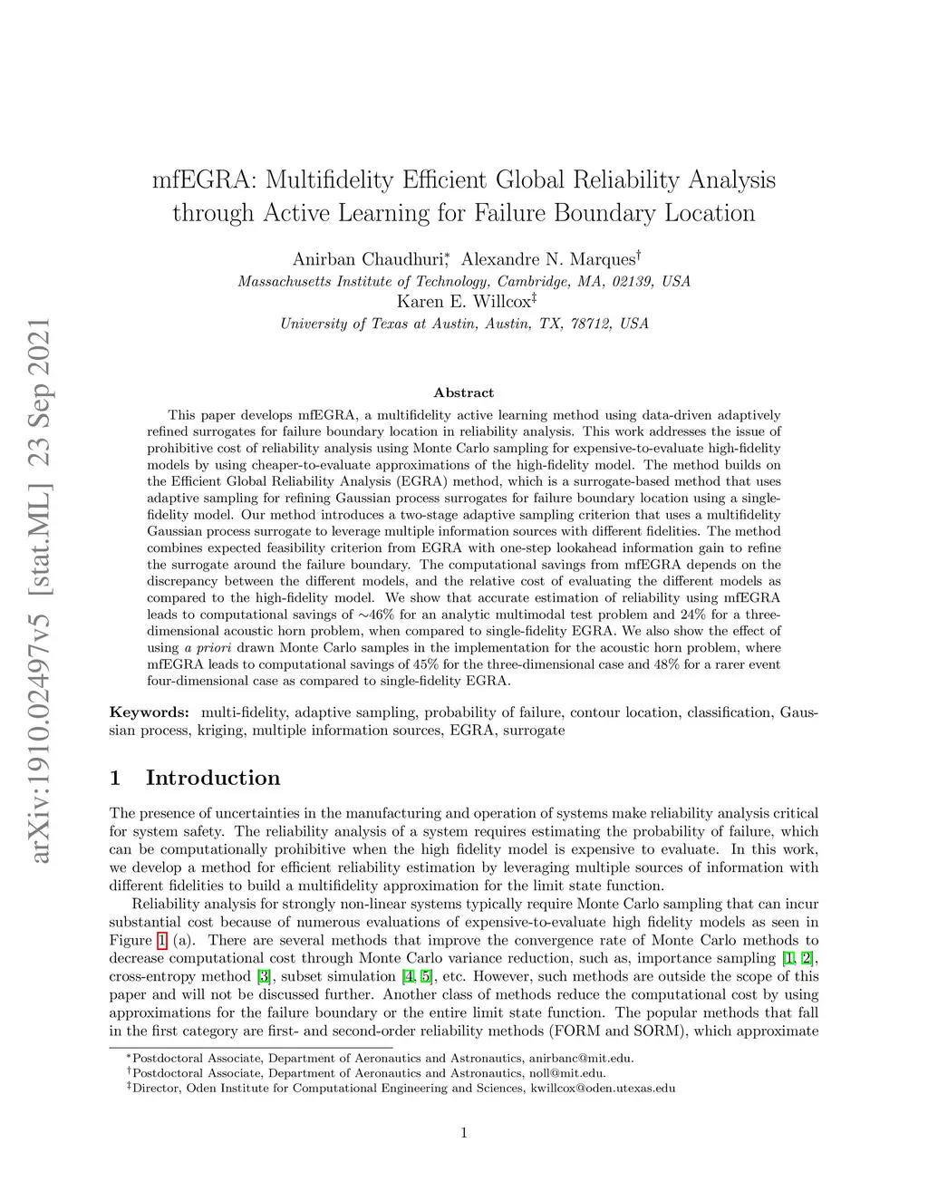 mfEGRA: Multifidelity Efficient Global Reliability Analysis through