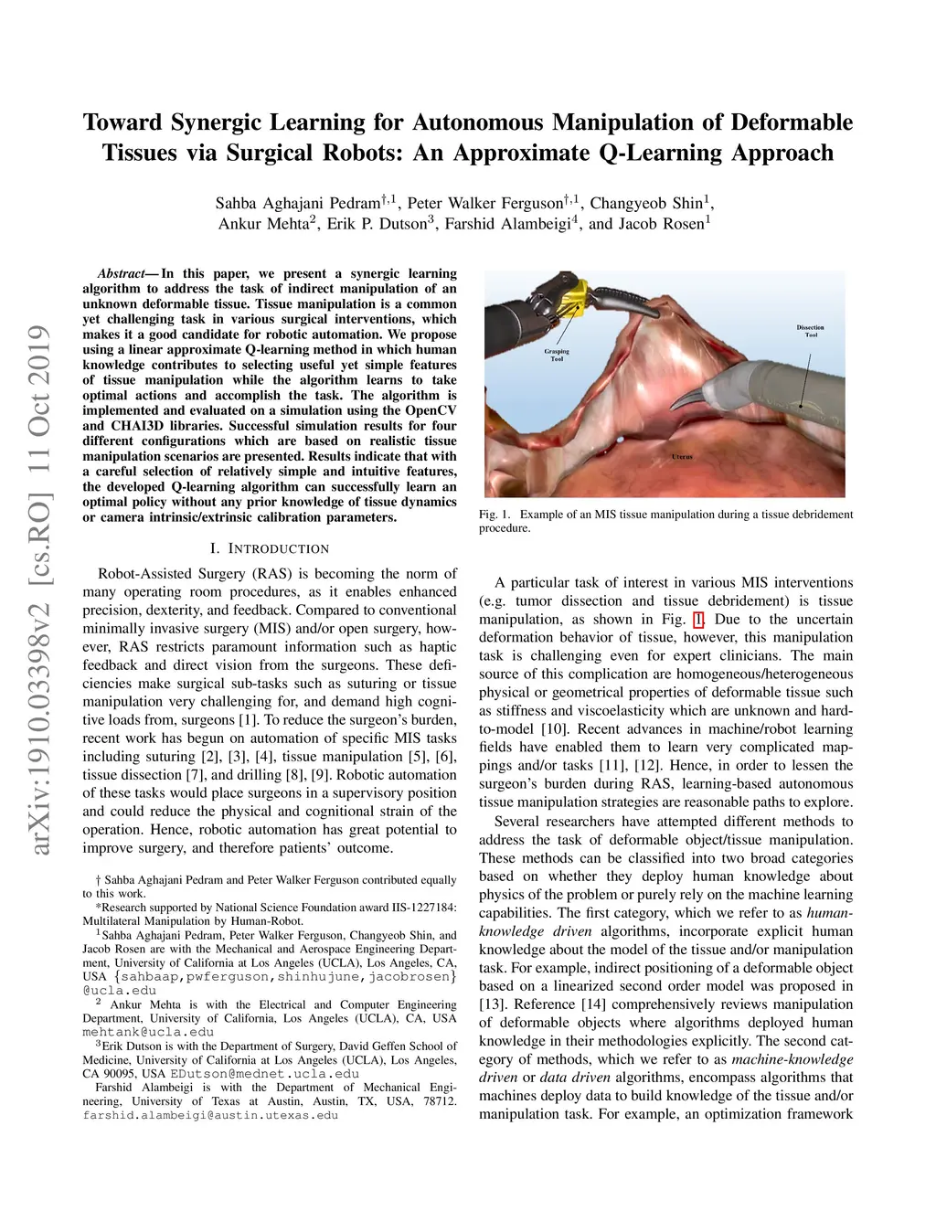 Tissues via Surgical Robots: An Approximate Q-Learning Approach