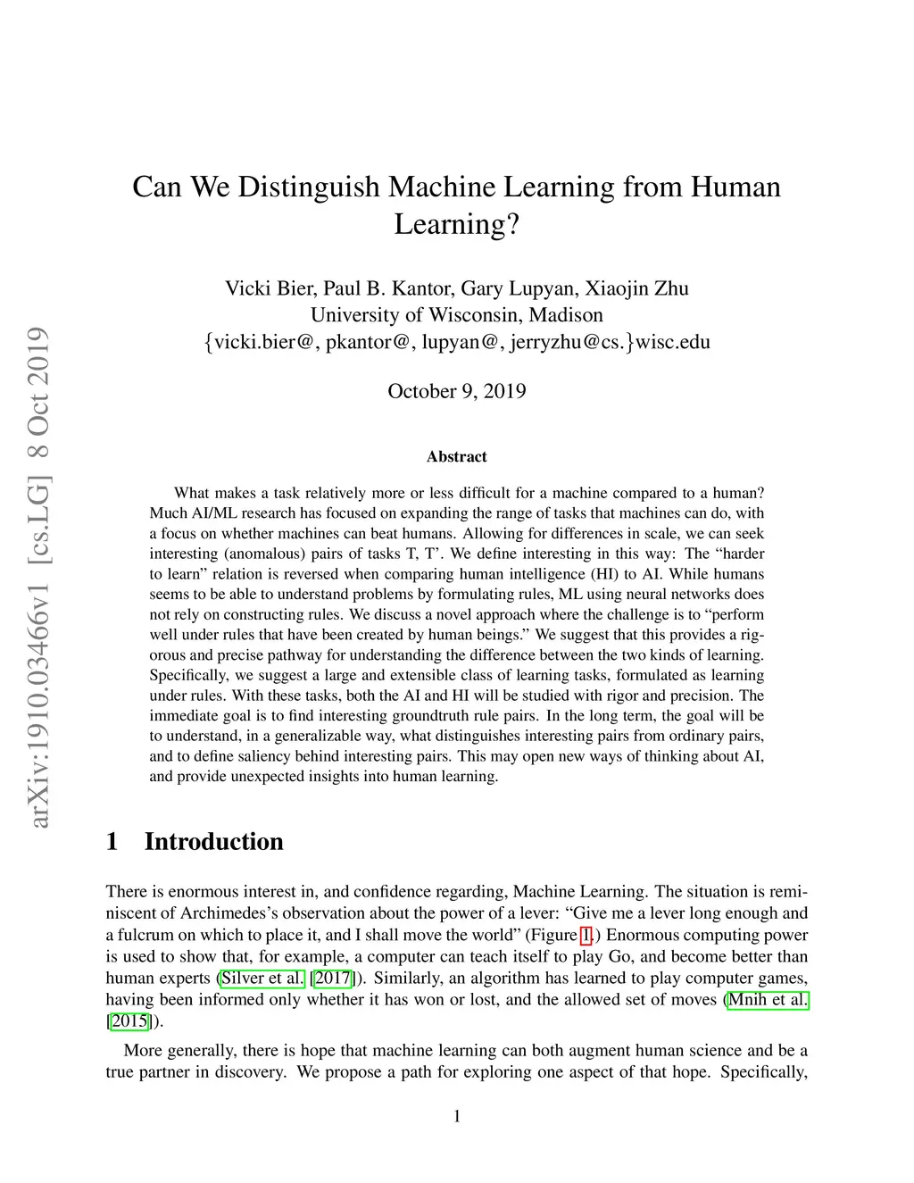 What makes a task relatively more or less difficult for a machine compared to a human? Much AI/ML research has focused on expanding the range of tasks that machines can do, with a focus on whether machines can beat humans. Allowing for differences in scale, we can seek interesting (anomalous) pairs of tasks T, T'. We define interesting in this way: The "harder to learn" relation is reversed when comparing human intelligence (HI) to AI. While humans seems to be able to understand problems by formulating rules, ML using neural networks does not rely on constructing rules. We discuss a novel approach where the challenge is to "perform well under rules that have been created by human beings." We suggest that this provides a rigorous and precise pathway for understanding the difference between the two kinds of learning. Specifically, we suggest a large and extensible class of learning tasks, formulated as learning under rules. With these tasks, both the AI and HI will be studied with rigor and precision. The immediate goal is to find interesting groundtruth rule pairs. In the long term, the goal will be to understand, in a generalizable way, what distinguishes interesting pairs from ordinary pairs, and to define saliency behind interesting pairs. This may open new ways of thinking about AI, and provide unexpected insights into human learning.