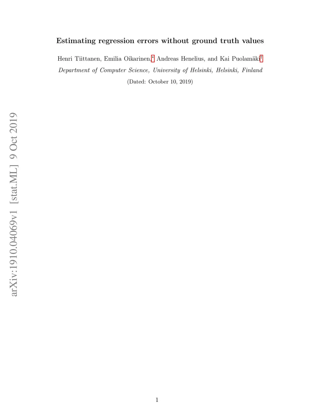 Estimating regression errors without ground truth values