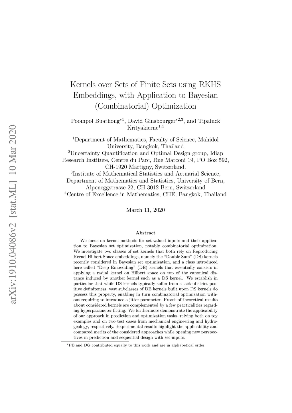 Kernels over Sets of Finite Sets using RKHS Embeddings, with Application
