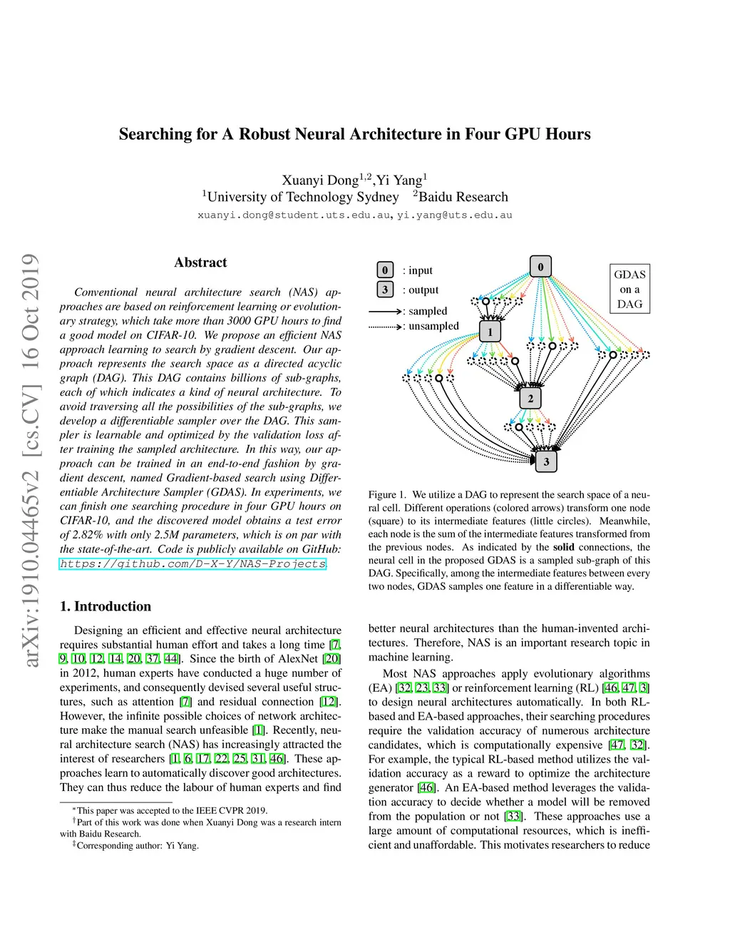 Searching for A Robust Neural Architecture in Four GPU Hours