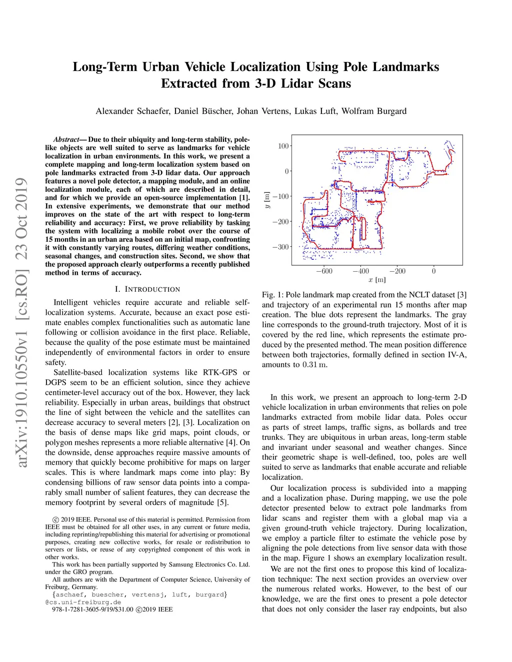 Long-Term Urban Vehicle Localization Using Pole Landmarks Extracted from