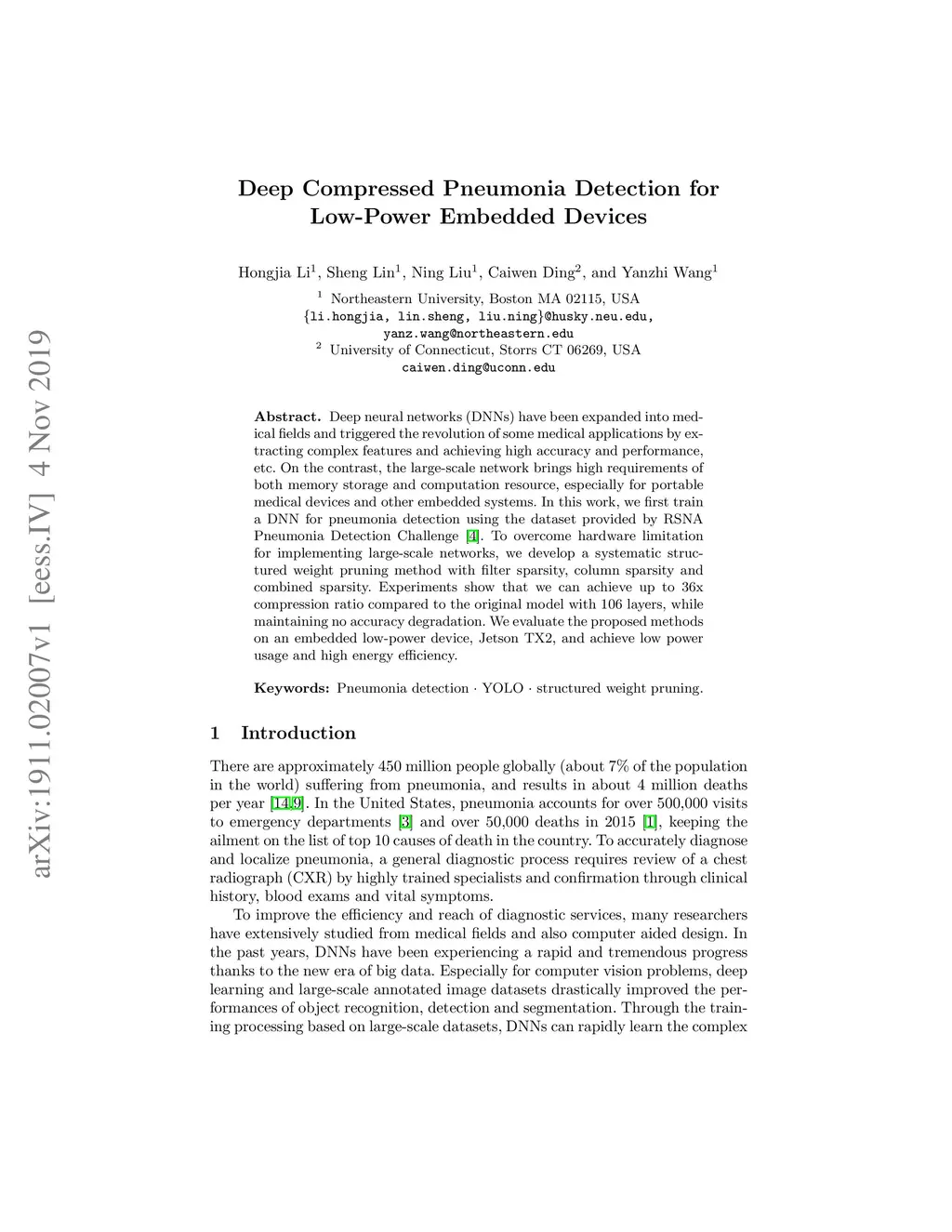 Deep Compressed Pneumonia Detection for Low-Power Embedded Devices