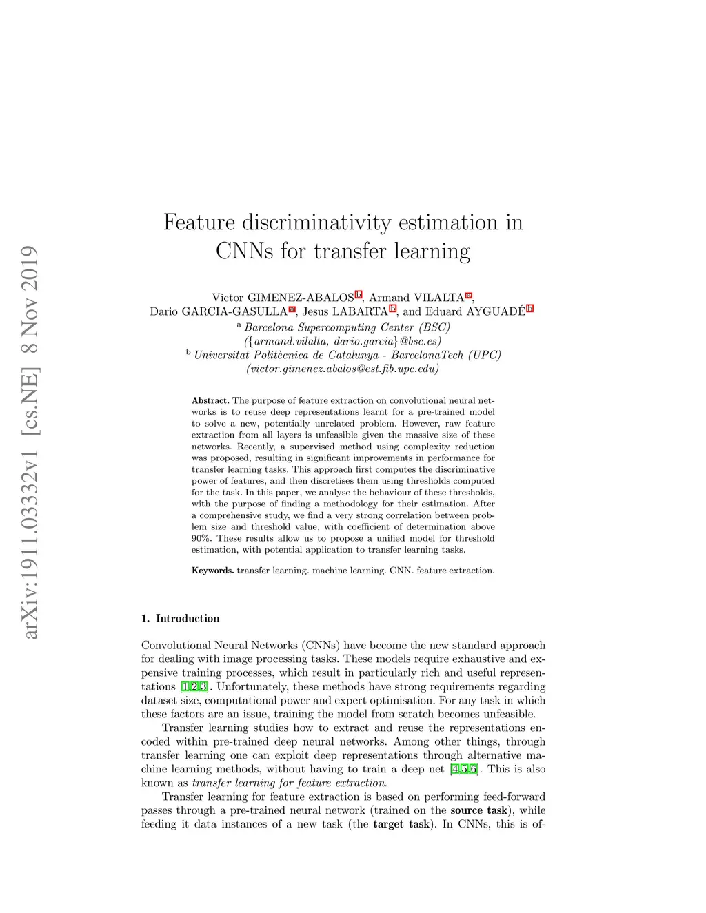 The purpose of feature extraction on convolutional neural networks is to reuse deep representations learnt for a pre-trained model to solve a new, potentially unrelated problem. However, raw feature extraction from all layers is unfeasible given the massive size of these networks. Recently, a supervised method using complexity reduction was proposed, resulting in significant improvements in performance for transfer learning tasks. This approach first computes the discriminative power of features, and then discretises them using thresholds computed for the task. In this paper, we analyse the behaviour of these thresholds, with the purpose of finding a methodology for their estimation. After a comprehensive study, we find a very strong correlation between problem size and threshold value, with coefficient of determination above 90%. These results allow us to propose a unified model for threshold estimation, with potential application to transfer learning tasks.