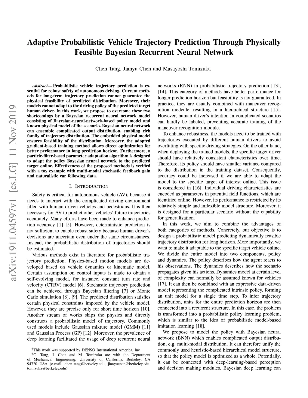 Adaptive Probabilistic Vehicle Trajectory Prediction Through Physically