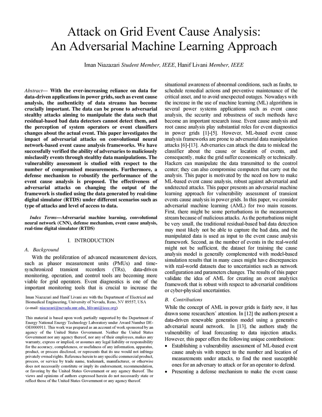 Adversarial Attacks on Grid Events Classification: An Adversarial