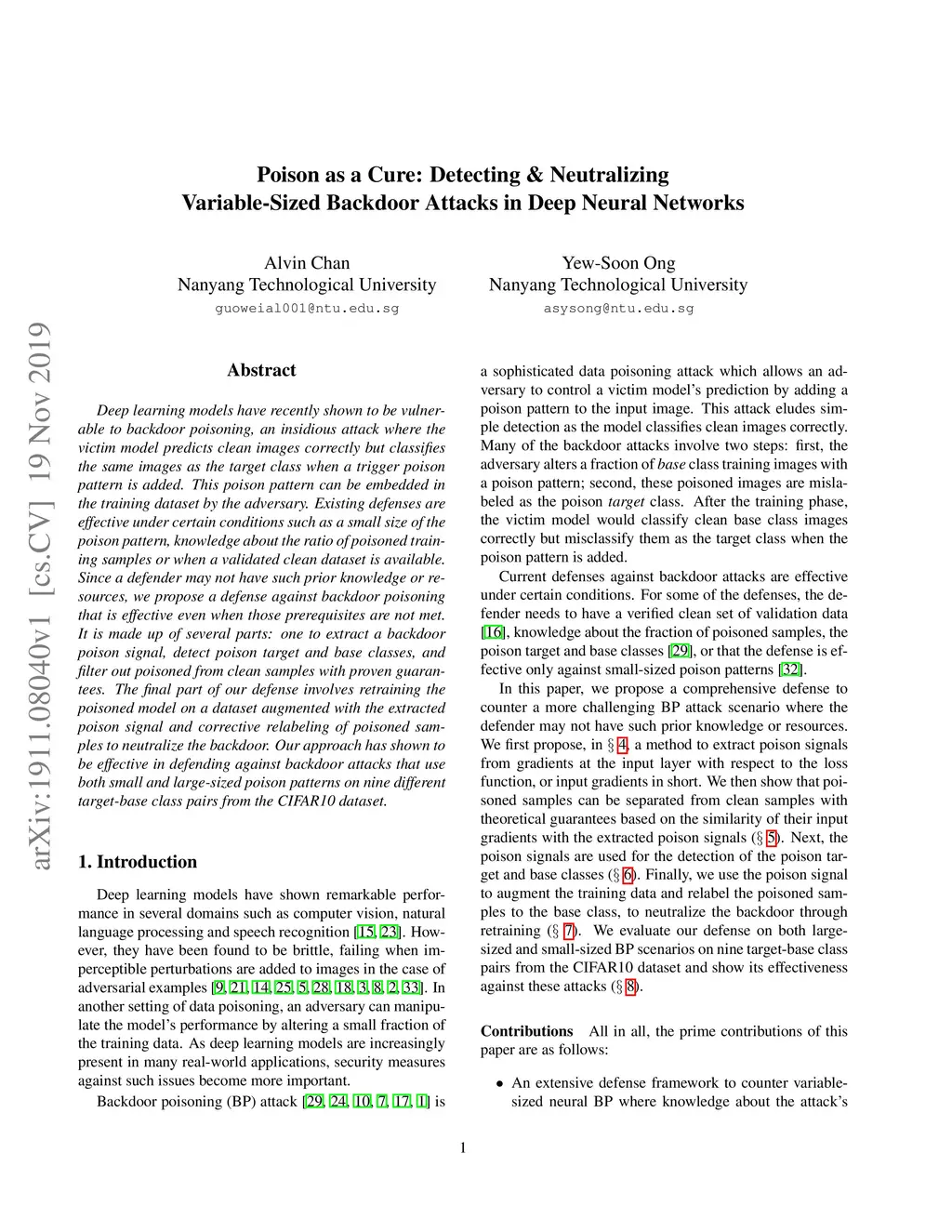 Poison as a Cure: Detecting & Neutralizing Variable-Sized Backdoor